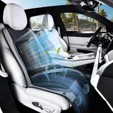 【Exceptional Ventilation】Crafted from luxurious leather and breathable mesh fabric, this cooling seat cushion combines exceptional ventilation with durability. Extensive breathable mesh allows cool air to circulate evenly throughout the entire seat. Its ergonomic design provides outstanding support and comfort. Exquisite stitching enhances the luxurious feel while elevating the overall aesthetic and opulence of your vehicle's interior. Furthermore, two built-in storage pockets provide convenient access for small items, helping maintain a tidy cabin and maximize space utilization.