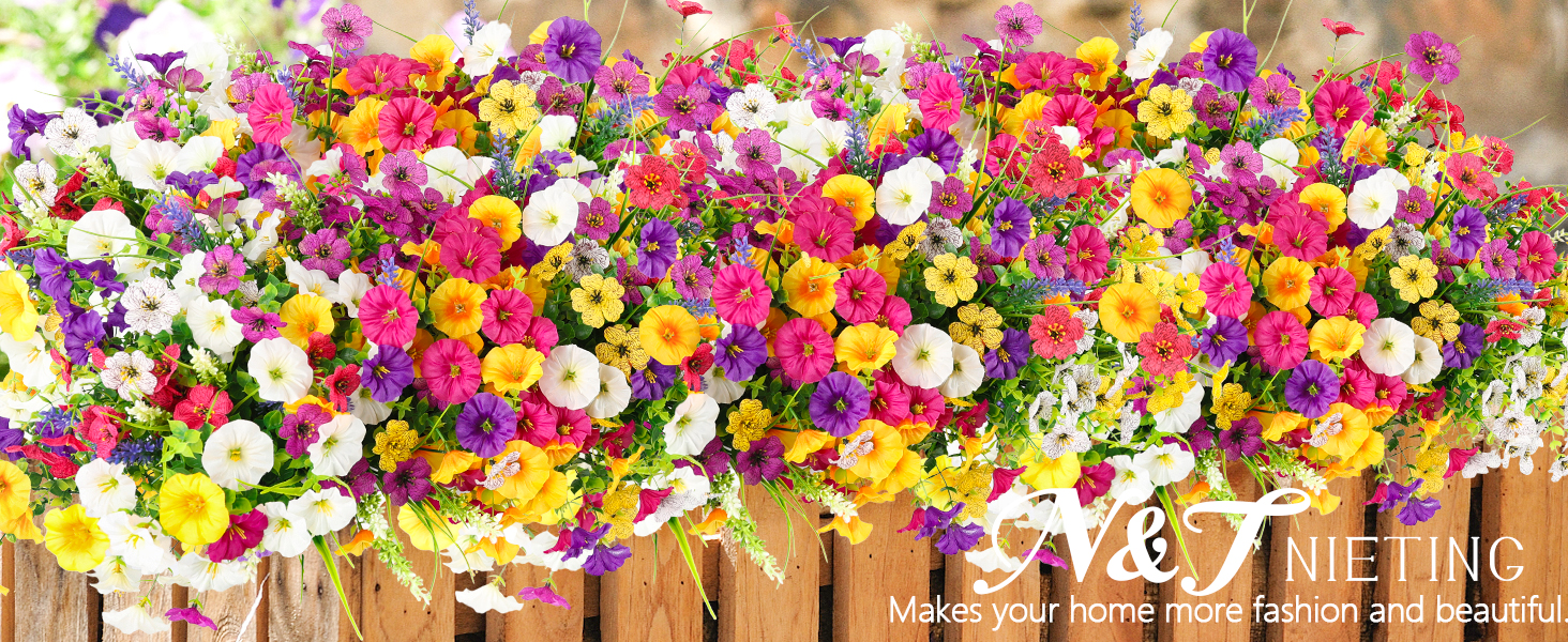 N&T NIETING Artificial Flowers for Outdoors, 12 Bundles Mixed Faux Silk Spring Flowers Look Real Fake Plants for Front Door Porch Planter Patio Garden Yard