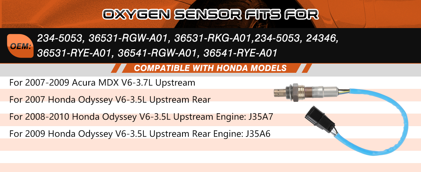 【Vehicle Fitment】ACAUTO Air Fuel Ratio Upstream Oxygen Sensor fit for Acura MDX 3.7L Upstream 2007-2009,fit for Honda Odyssey 3.5L Upstream Rear and Front 2007-2010.