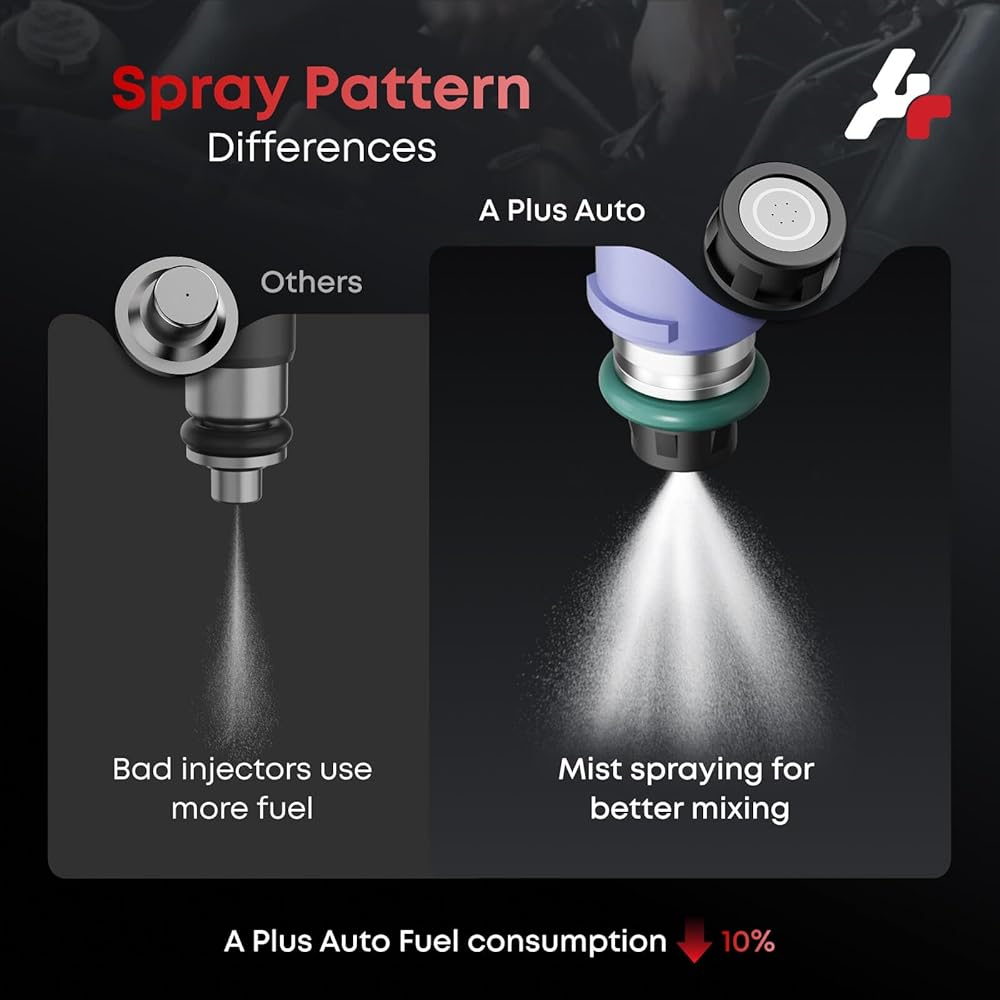 [Optimize Fuel Economy and Protect the Environment] A Plus Auto fuel injectors utilize a precision 6-hole nozzle and durable materials to ensure superior atomization, delivering smoother engine operation, increased power response, and better fuel efficiency.