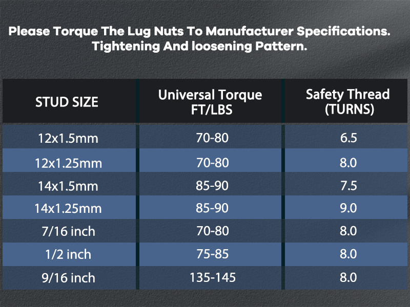 【INSTALLATION NOTES】The use of a thread lock adhesive is encourage for installing.The back of the wheel must sit flush on the wheel spacers/adapter.The studs on the vehicle cannot stick past the face of the the wheel spacers/adapter. If they do,you may need to modify by grinding/trimming