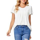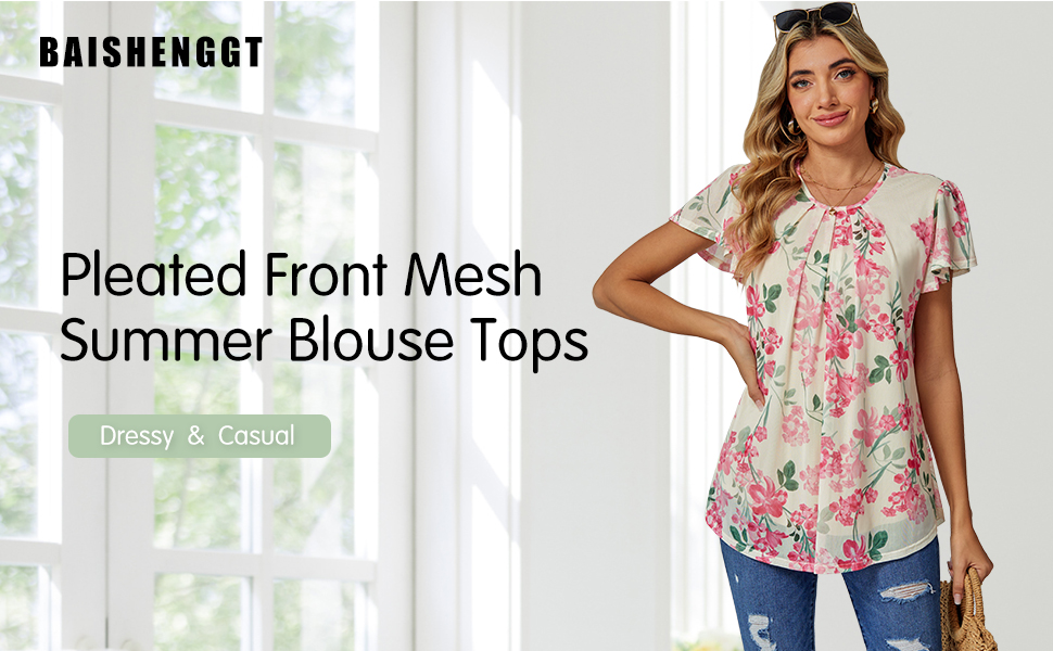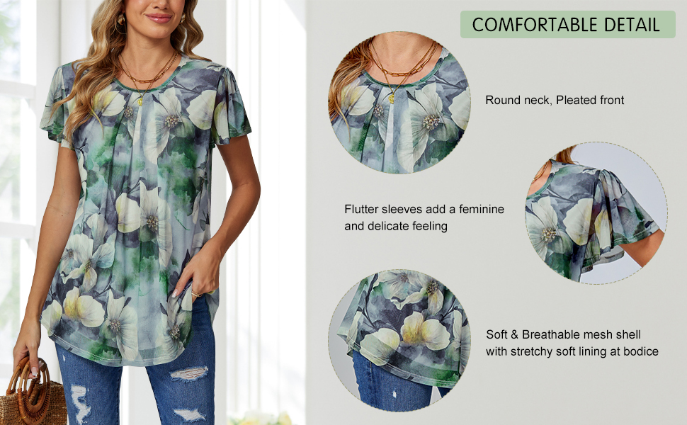 Lightweight & Flowing mesh shell with stretchy soft lining at bodice, comfortable & no see through, no wrinkles. Flutter sleeves add a feminine and delicate feeling, providing a flattering and elegant look.