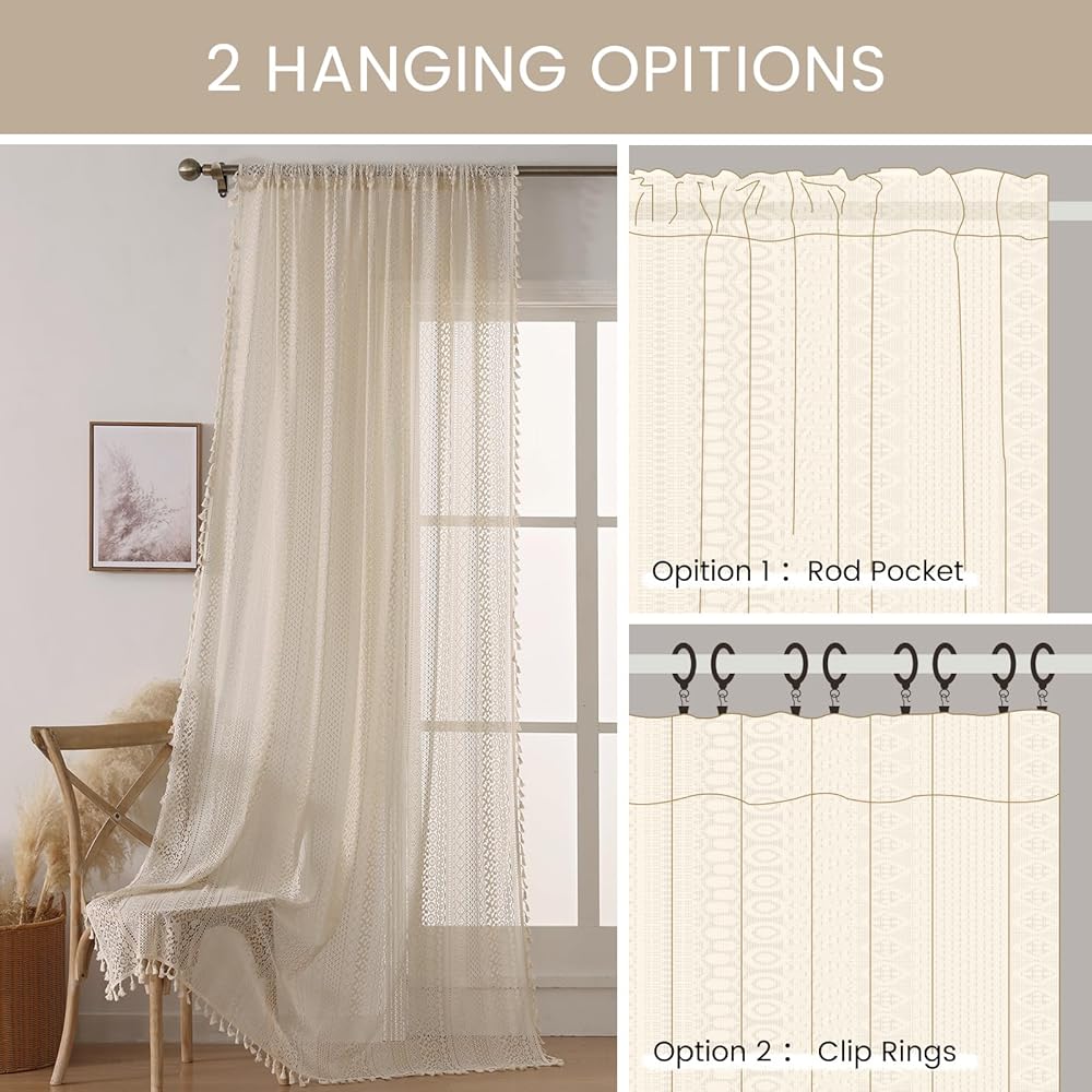 • Vintage Room Decor:The crochet tassel curtains can be paired with most color to make your room vintage and lively style and show off your taste and unique style. beige geometric patterns and tassels can add interest and give you a vintage bohemian look