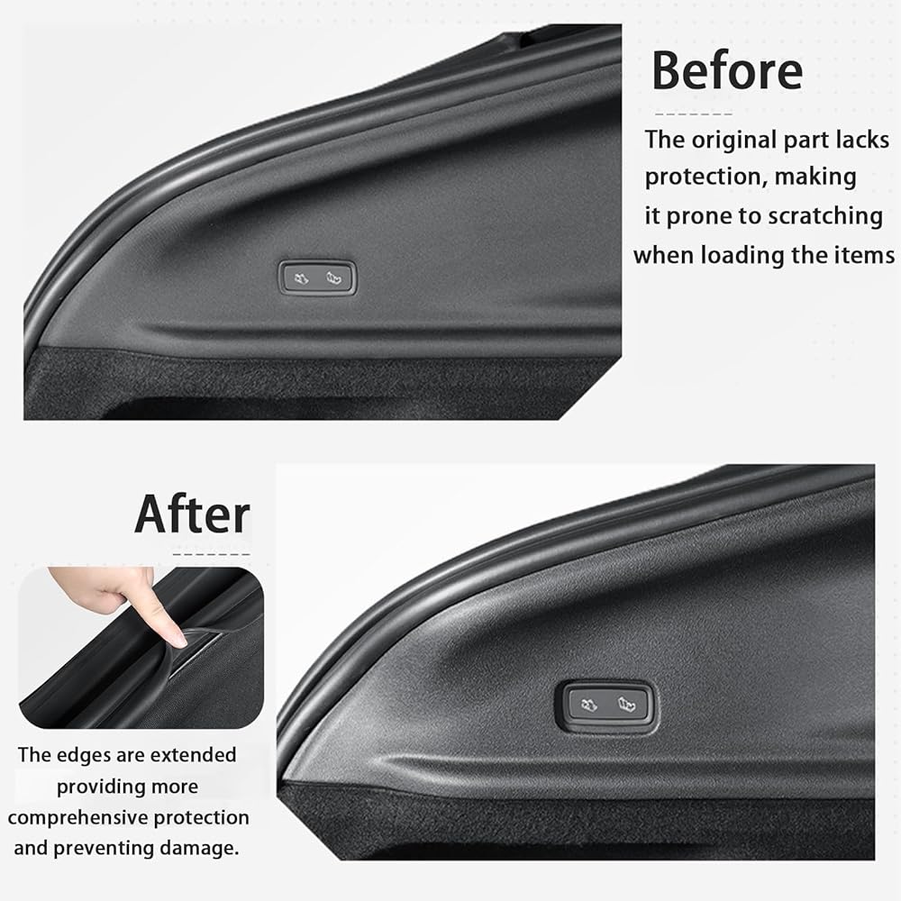 【All-around protection】:The trunk tailgate mat keeps the trunk tailgate safe from scratches, and its high edge design effectively blocks liquids, snow and sand from entering the original mat, keeping it clean and dry all year round. Rear Bumper Corner Guard provides all-around scratch protection for the vehicle's rear bumper, preventing damage caused by friction and collisions when loading and unloading items. Rear Trunk Side Anti-Scratch Mats It can provide comprehensive protection for the trunk, allowing you to carry more equipment for camping without any worries.The combination of the two provides complete protection for the rear area of the vehicle