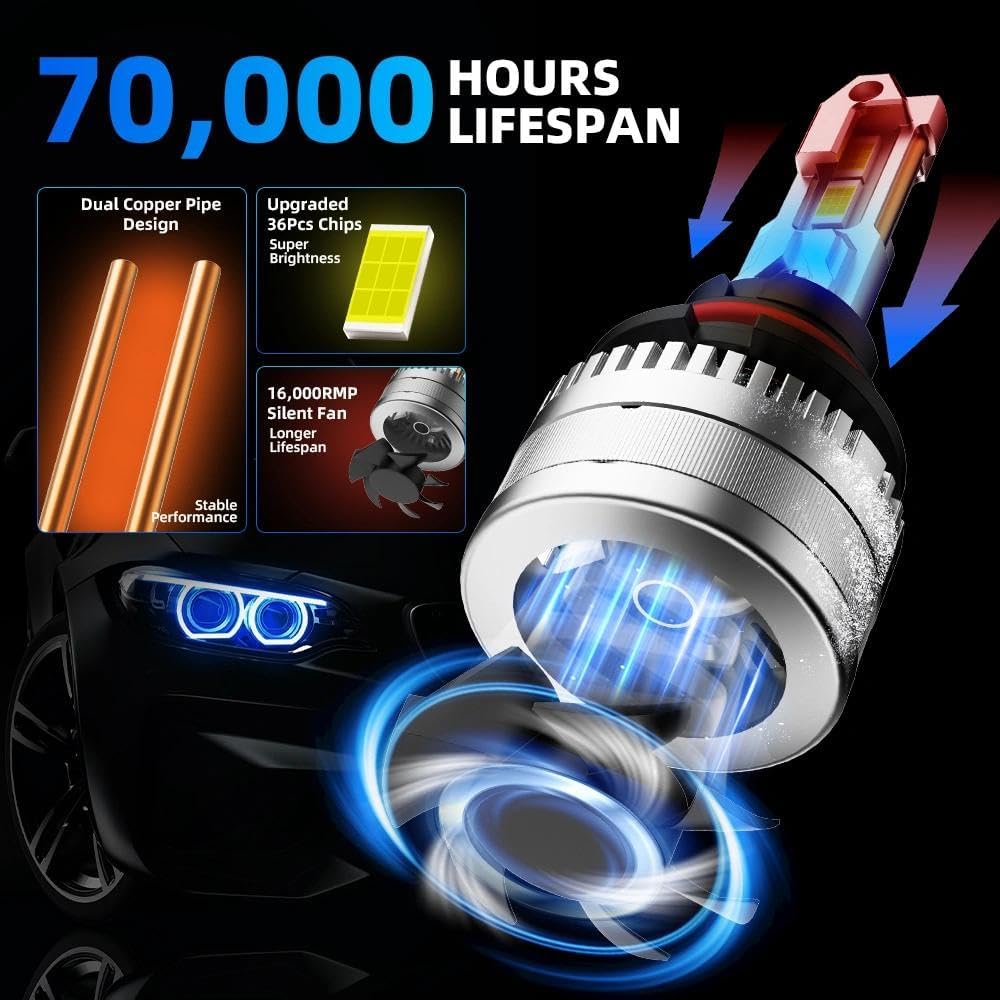 H13 Light Bulb, 800% Brighter H13 9008 Bulbs, Plug N Play, Long Lifespan, No Flicker, Easy Installation, 2PCS.