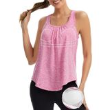 PLEATED RACERBACK AND ROUND NECK TANK: Yoga tops for women is designed with pullover, not removable bra pads, deep u neck, racer back, wide shoulder straps, pleat at chest and back, high low hemline and loose fit style for a relaxed and unrestricted movement. More detail, cross-over pleat on the back design looks sexy and charming, which keeps air flowing and creates a breezy feel with more cooling as you run heats up or exercise in routine.