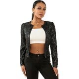 Women Jacket, Long Sleeve Open Front Sequined Fall Ladies Cardigan for Club Party