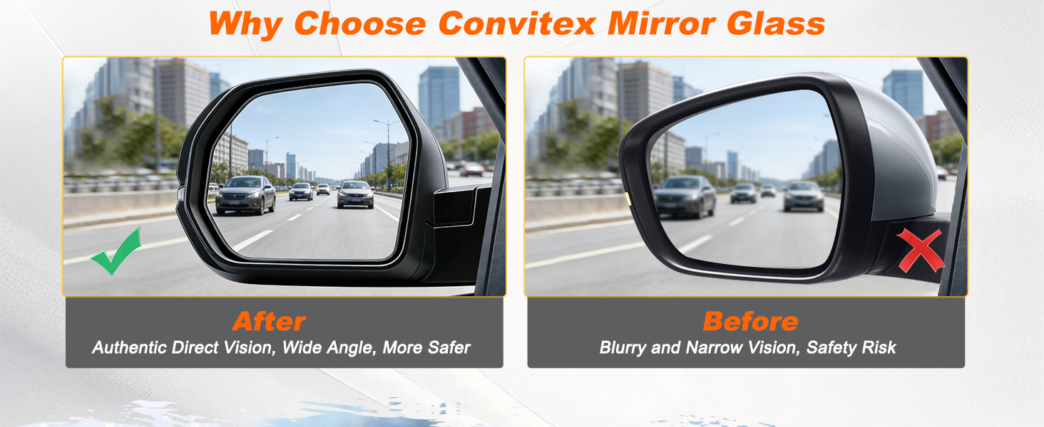Wide, Distortion-Free Visibility – Premium glass resists cracking and provides a clear rearview. See more of the road behind you for confident lane changes and safer reversing