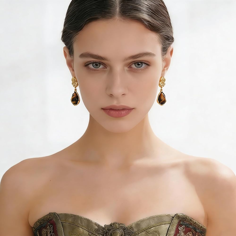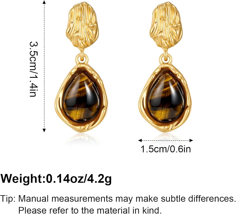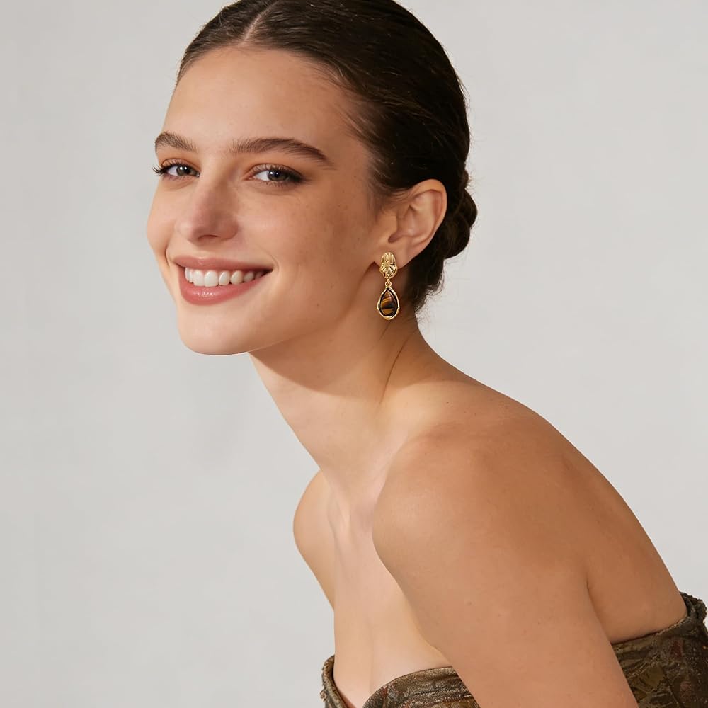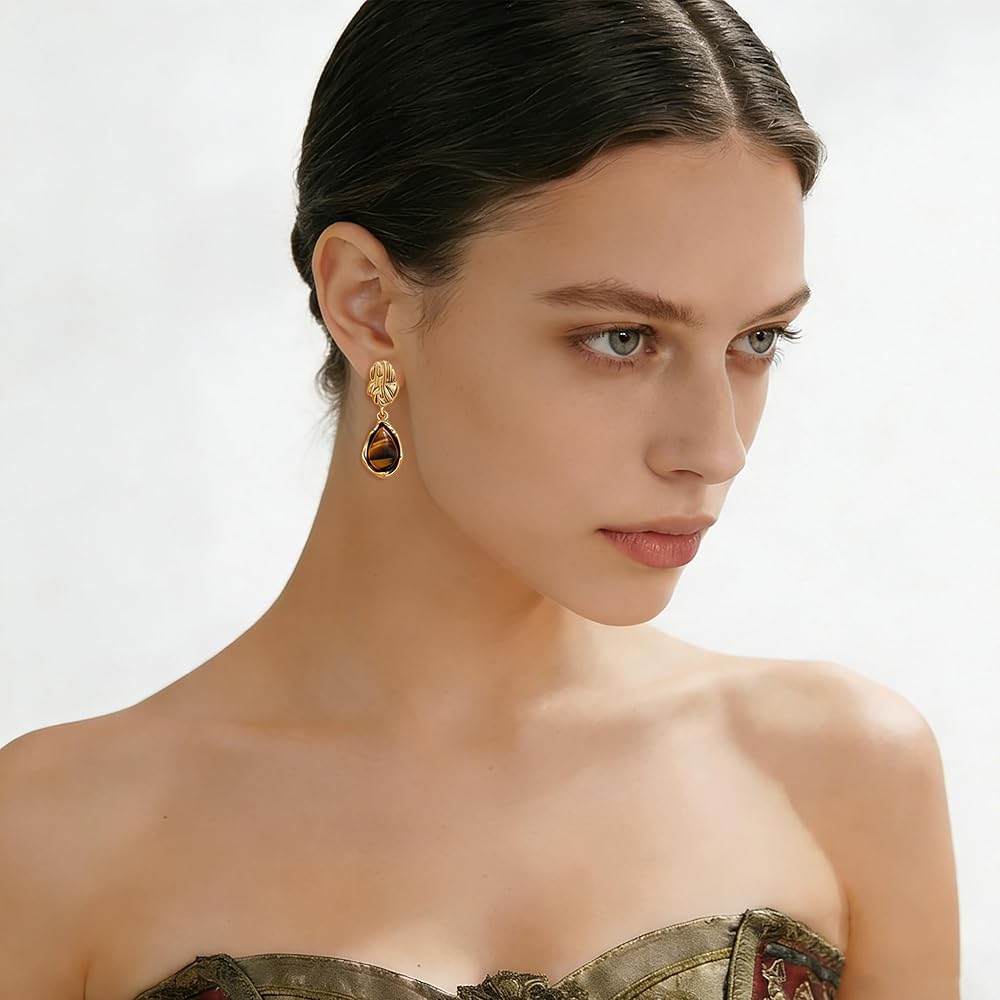 Unique Design: These drop dangle earrings feature a unique teardrop - shaped with tiger eye stone, paired with a textured gold - plated top. The brown earrings create an atmosphere of vintage, bohemian and trendy styles.