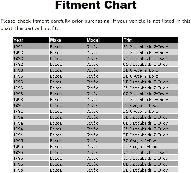 -Compatibility:Fits 1992-1995 Honda Civic 2DR Coupe / 3DR Hatchback