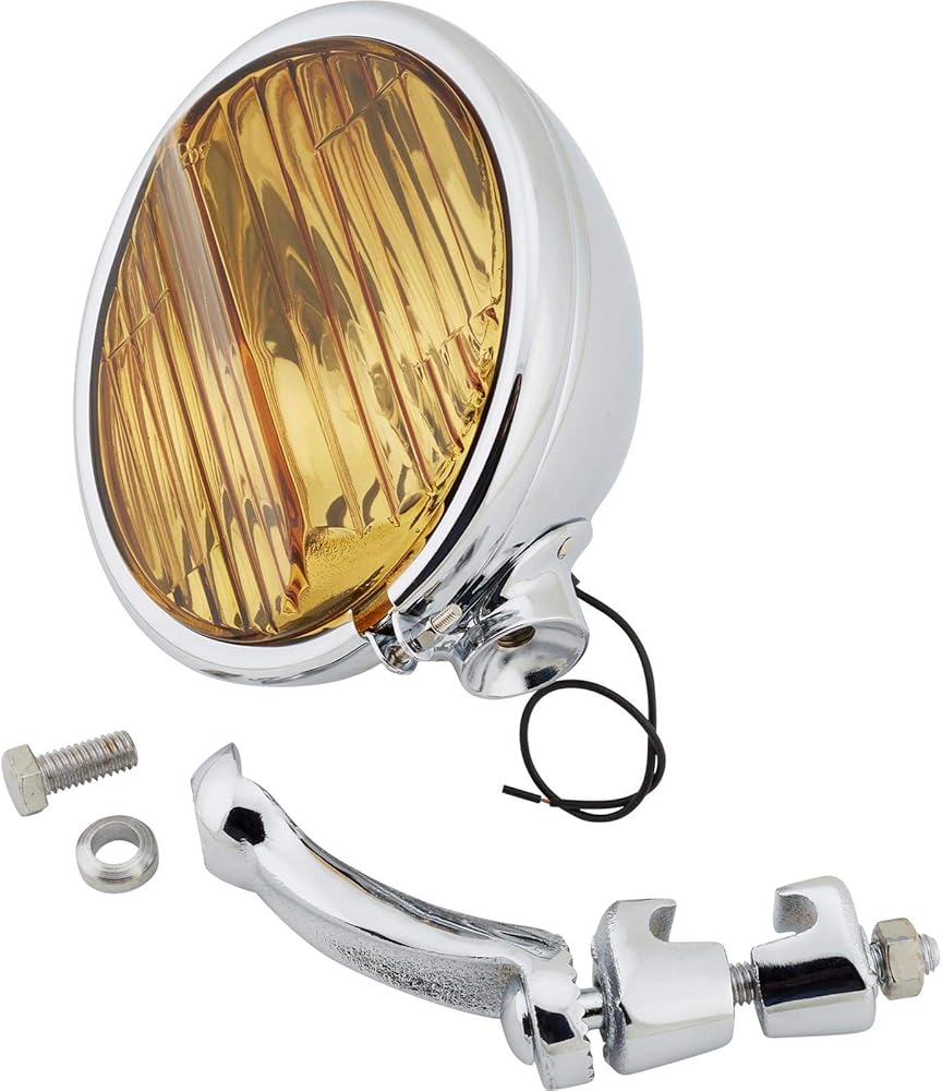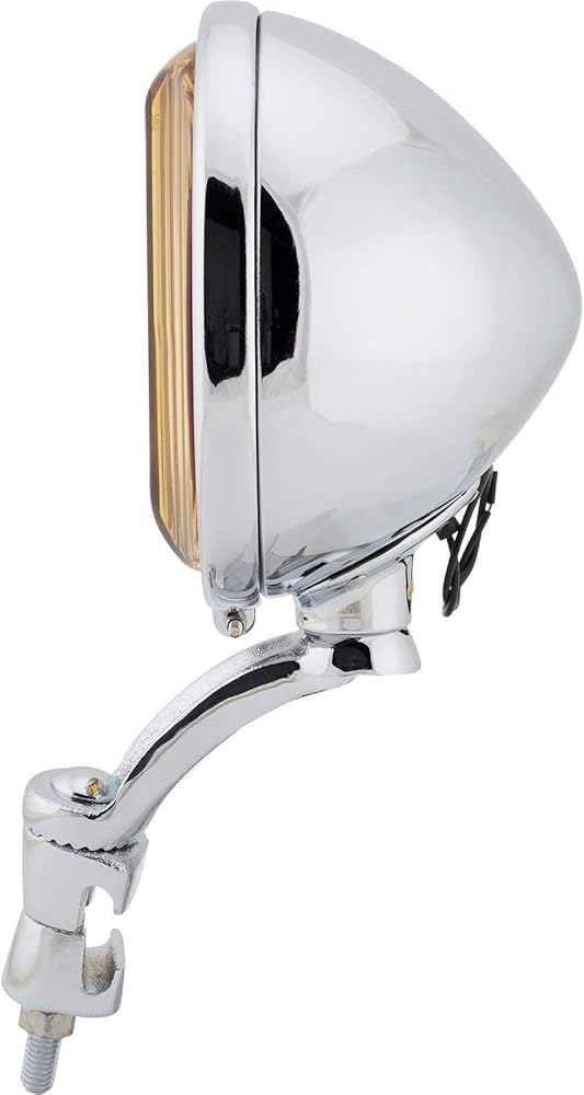 Speedway Motors Passenger Car Fog Lamps with Bracket, Amber Pair, Stainless Steel Housing, Quartz Halogen Cat Eye Lens, Universal Ball & Cup Adjustable Mount Kit