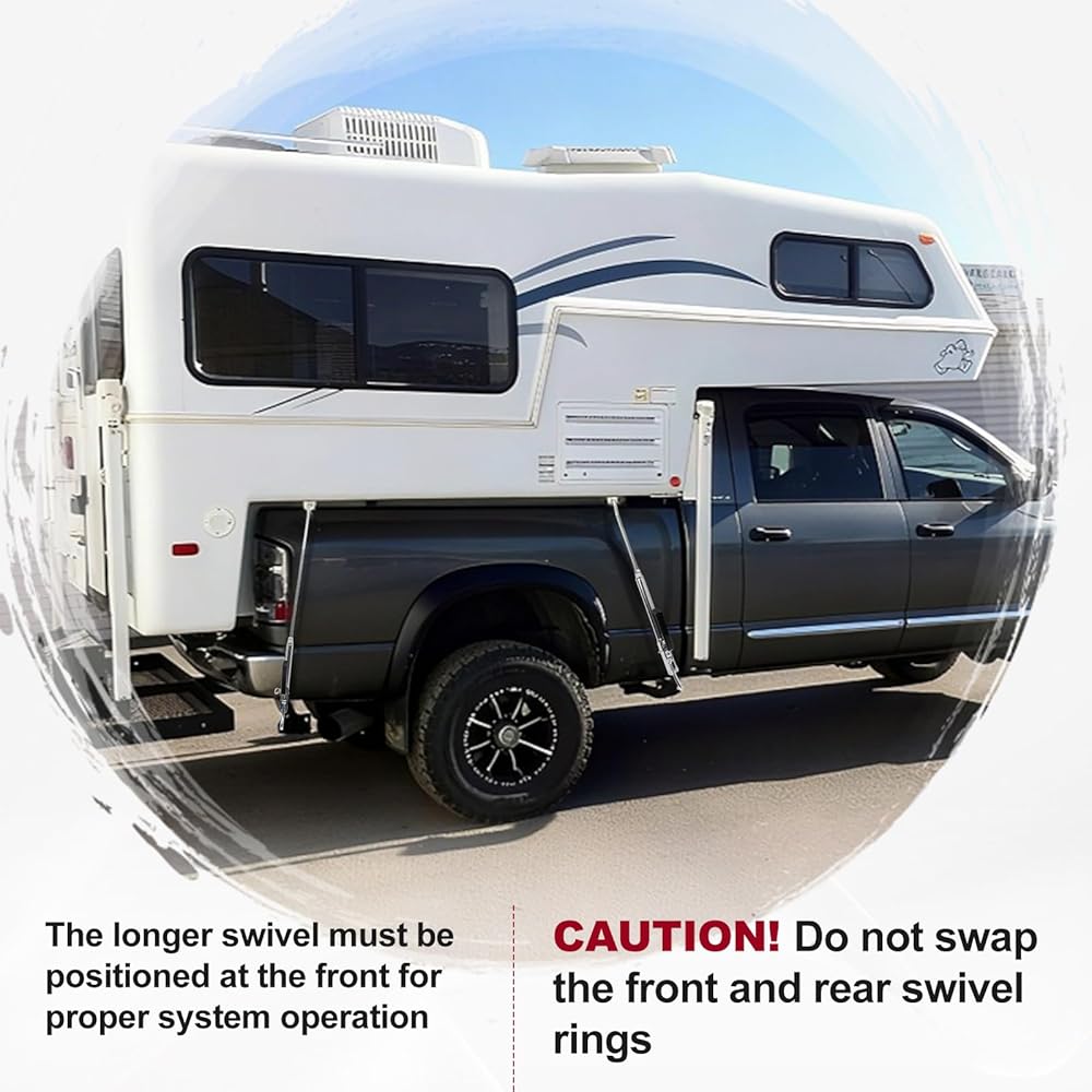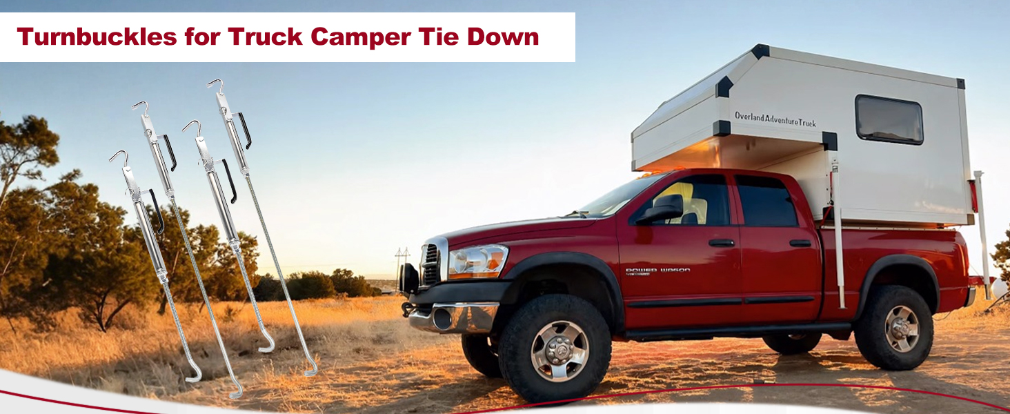 【Enhanced Security On The Road】– Drive with total confidence. The turn-buckles securely locks your camper to your truck's bed and bumper, while the added front spring tension intelligently reduces stress on anchor points.