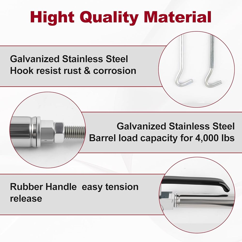 【Maximum Durability & Rust Resistance】– Engineered with zinc-coated, stainless steel barrels, our turn-buckles are your shield against rust and corrosion, ensuring reliable performance and durability season after season.