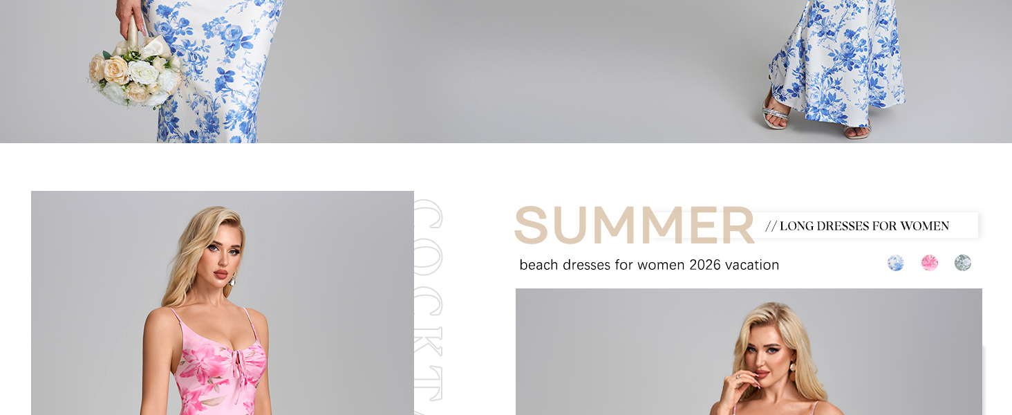 Summer dresses for women with an elegant necklace, earrings, high heels, and a stylish handbag to complete your look. The right accessories will elevate your outfit, making it suitable for both daytime and night events