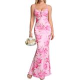 Flower dresses for women, long dress, bodycon maxi dresses for women 2026, bust lace-up design for adjustable fit, the floral pattern brings a refreshing vibe, making it a standout piece in any wardrobe