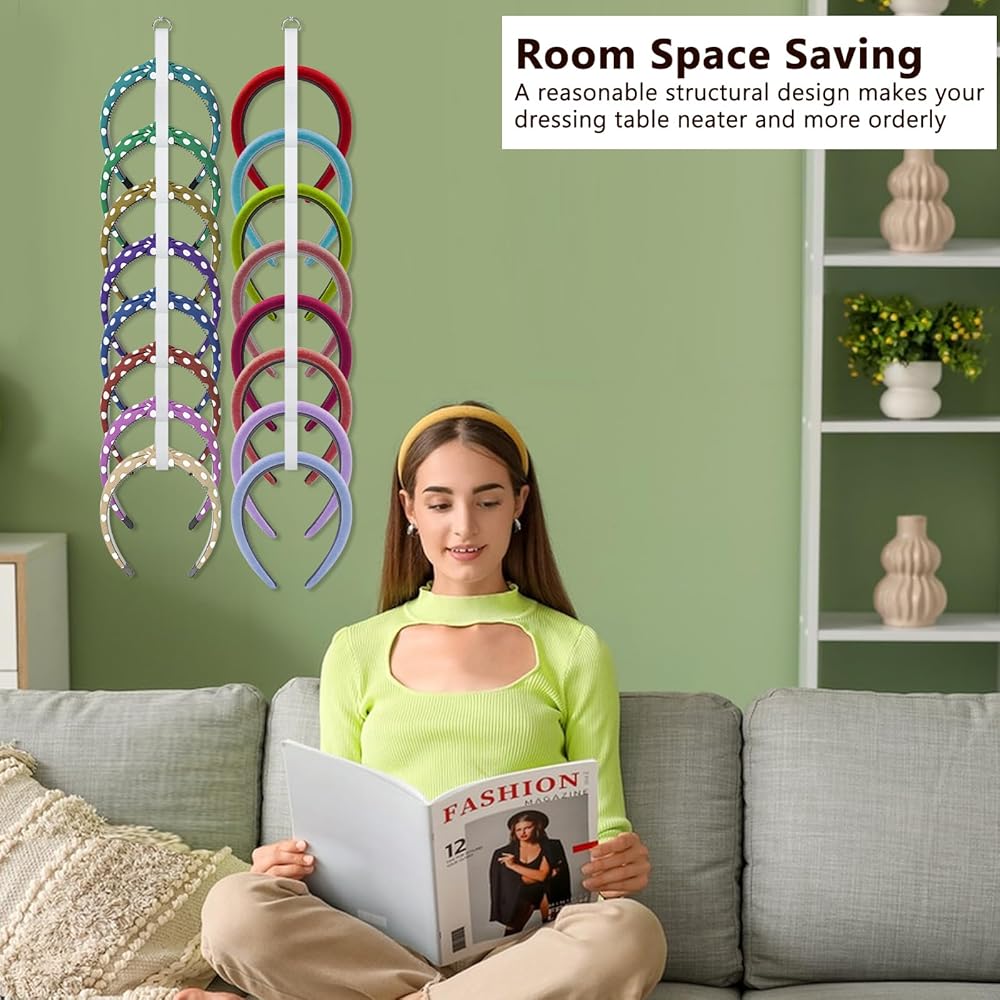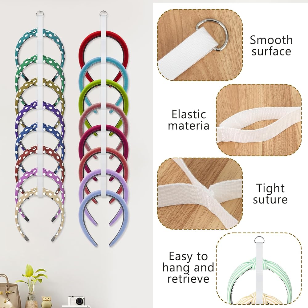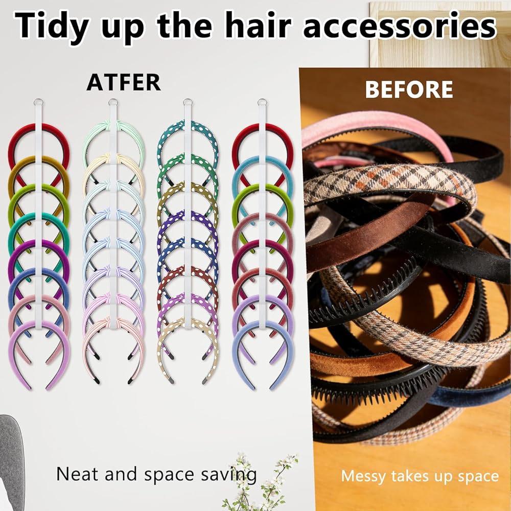 This elegant set of 4 white wall-mounted organizers is designed to declutter your life, transforming scattered hairbands, scrunchies, and hoops into a chic, accessible display. Each organizer features 8 sturdy rings—totaling 32 rings across the set—so you can neatly store and showcase your entire collection. .