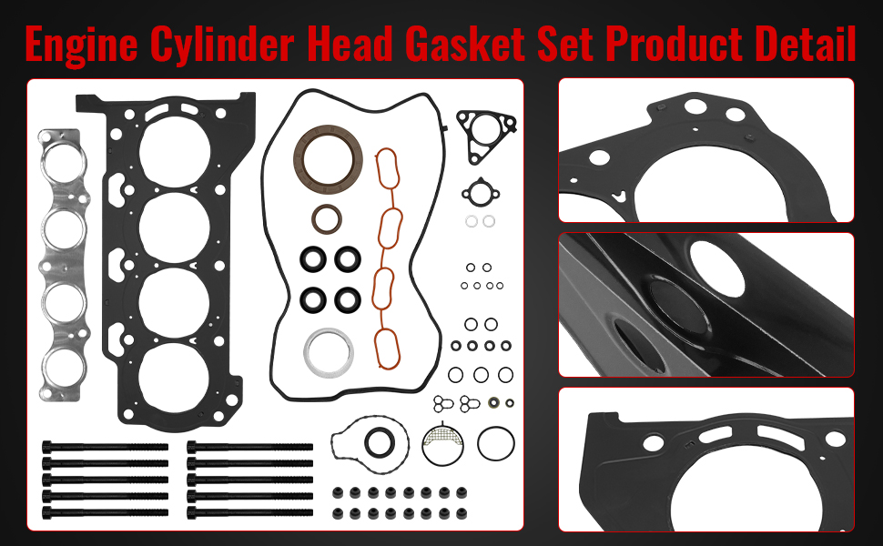 【Package Included】1 x MLS Head Gasket, 1 x Valve Cover Gasket, 1 x Intake Manifold Gasket, 1 x Exhaust Manifold Gasket, 16 x Valve Stem Seals, 1 x Front Camshaft Seal, 10 x Head Bolts, O-rings and Other Small Gaskets, 1 x Timing Chain, 1 x Oil Pump Chain, 1 x Timing Chain Tensioner, 1 x Oil Pump Chain Tensioner, 3 x Guides, 3 x Engine Sprocket. Please check your vehicle model and part number before purchasing the 1.8 head gasket timing chain kit
