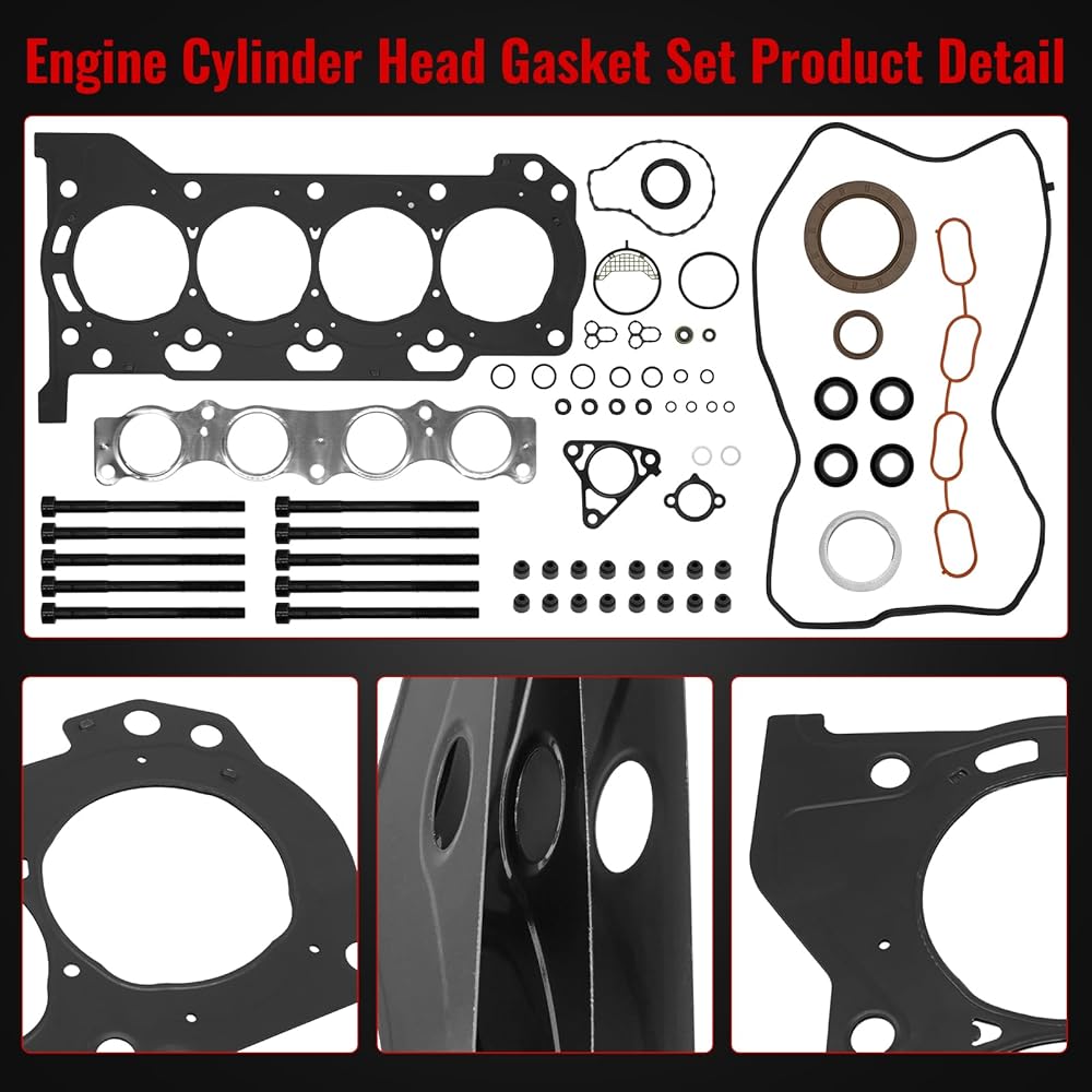 HS26515PT Head Gasket Timing Chain Kit with Head Bolts Water Pump Fit for Toyota Corolla 1.8L 2009-2015, for Matrix 1.8L 2009-2014, for Scion Xd 1.8L 2008-2014, Replace 13506-0T020, 13540-0T020