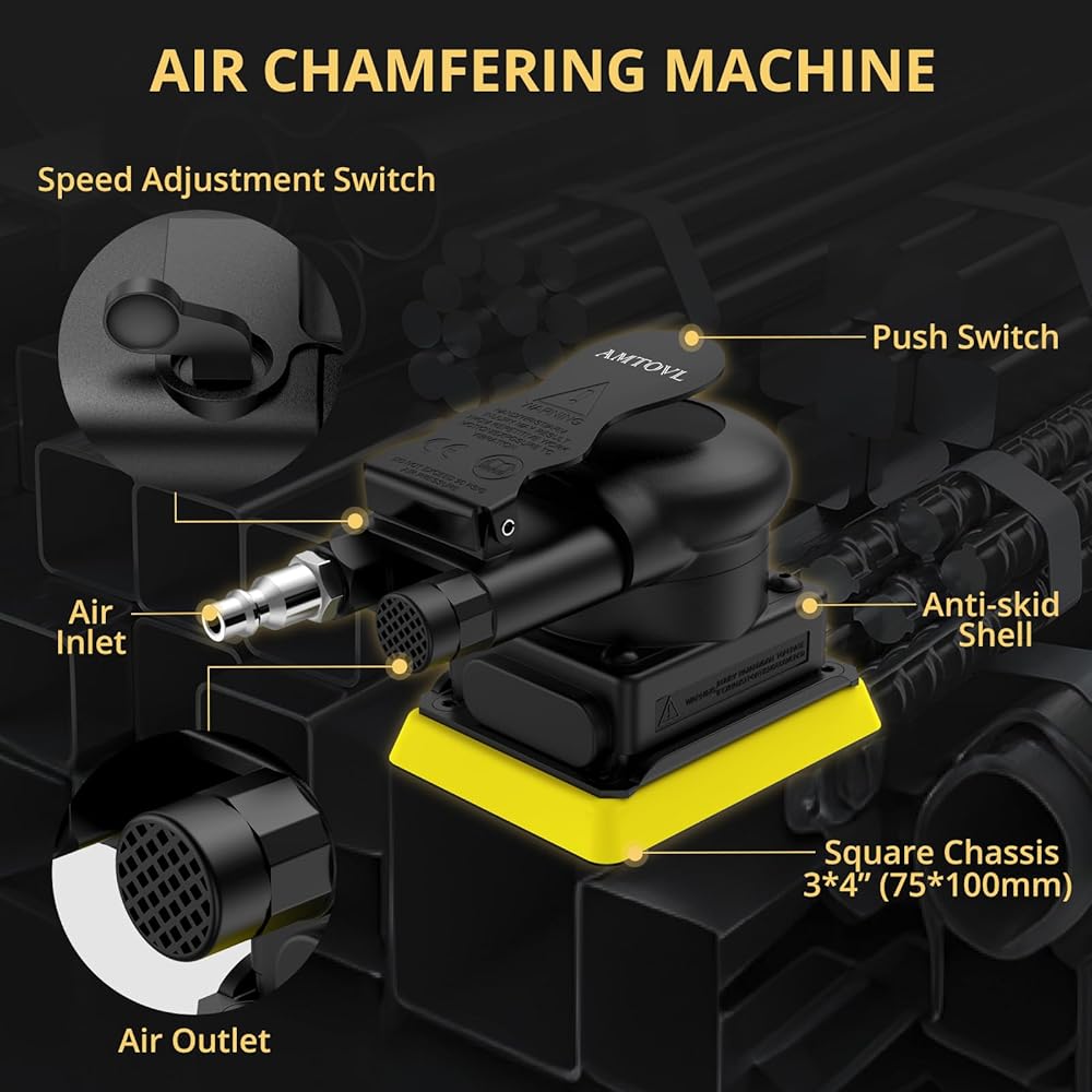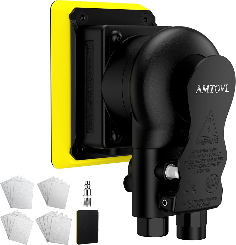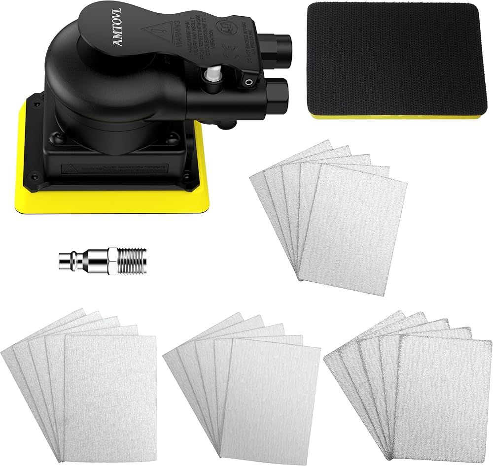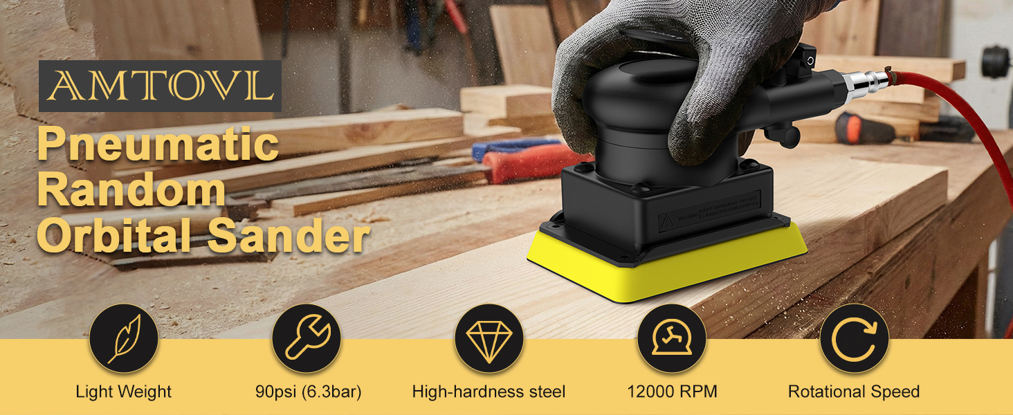 AMTOVL Pneumatic Random Orbital Sander – 3 x 4-inch Air Sander with Variable Speed, 12000 RPM Palm Sander for Automotive Bodywork, Woodworking & Surface Finishing