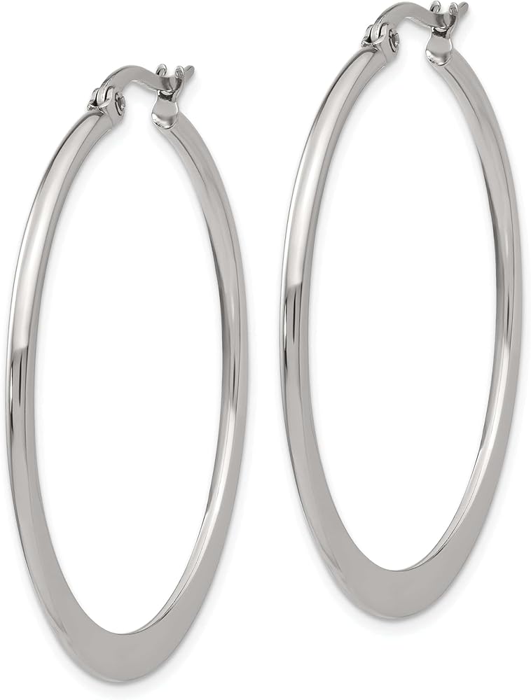 Finish:Polished / Length of Item:40 mm / Material: Primary:Stainless Steel / Thickness:2 mm / Width of Item:40 mm / Packaging:Gift Pouch / Product Type:Jewelry / Jewelry Type:Earrings / Sold By Unit:Pair / Gender:Women's / Material: Primary - Color:White / Earring Closure:Wire & Clutch / Earring Type:Hoop