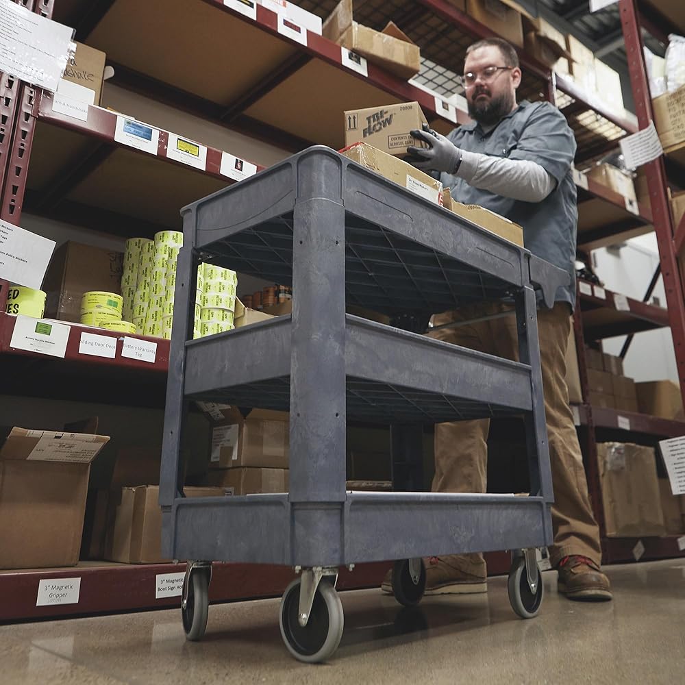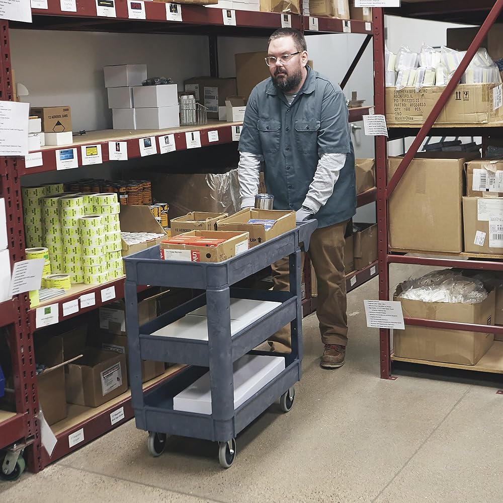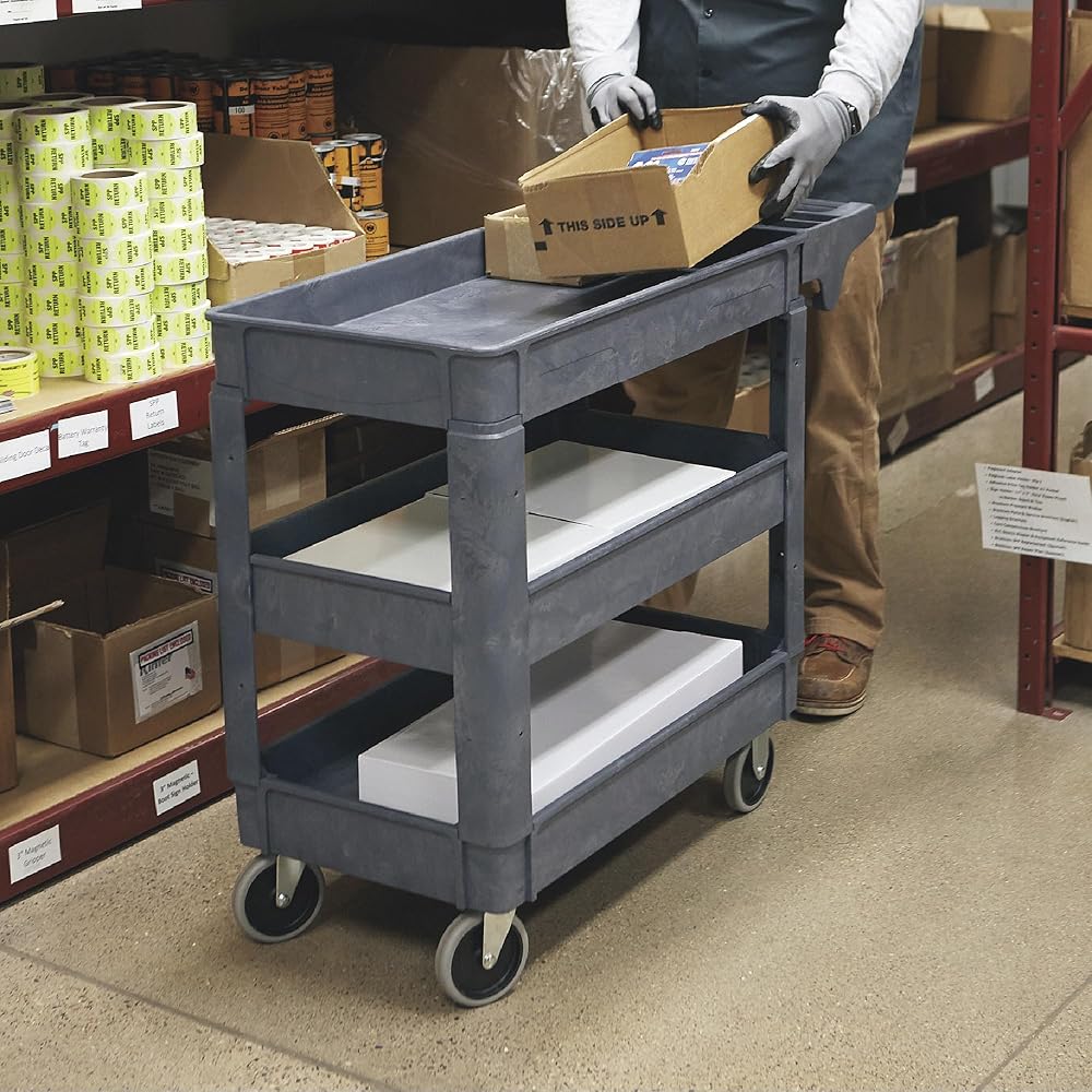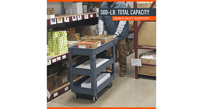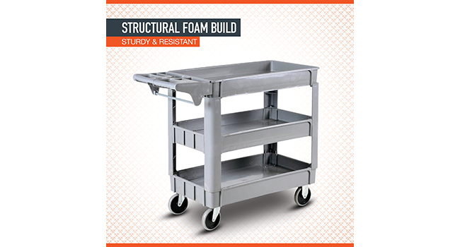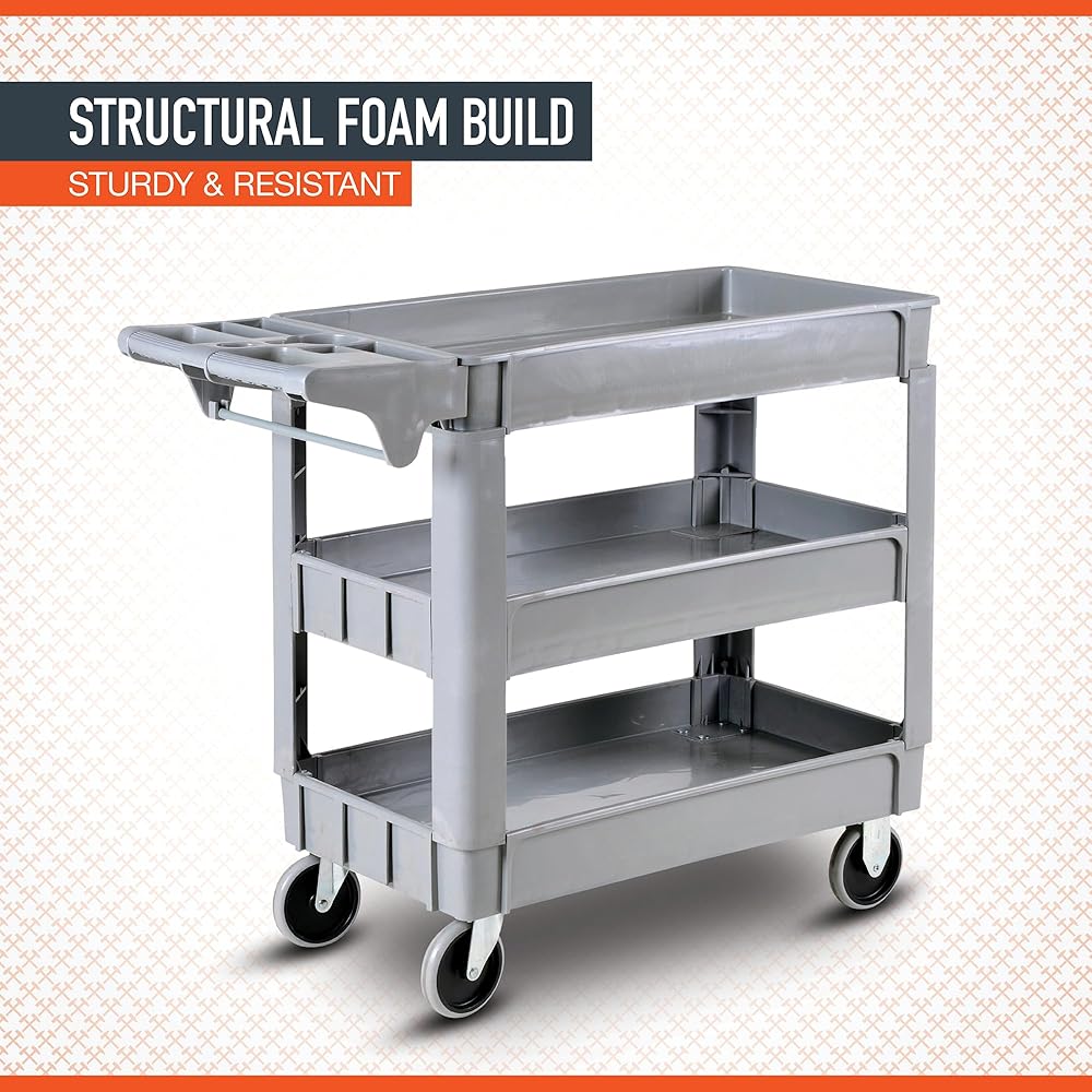 Ironton 500-Lb. Capacity 3 Tray Utility Cart, Maintenance-Free Structural Foam Construction Cargo Pushcart, Scratch Resistant, Easy to Clean Service Cart, 40in.W x 17in.D x 32 9/10in.H