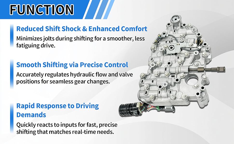 Function: RE0F11A JF015E Transmission Valve Body ensures a smooth shifting process through precise control of hydraulic flow and accurate adjustment of valve positions. This design effectively minimizes shock and jolts during gear changes, delivering a significantly more comfortable driving experience. Additionally, it features rapid responsiveness to the driver's inputs, enabling fast and precise shifting operations that align with real-time driving demands.