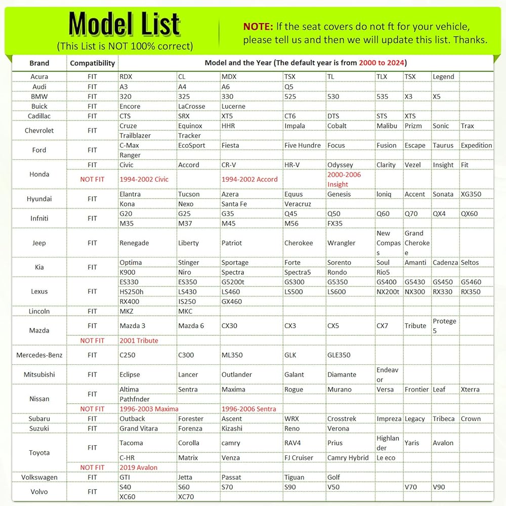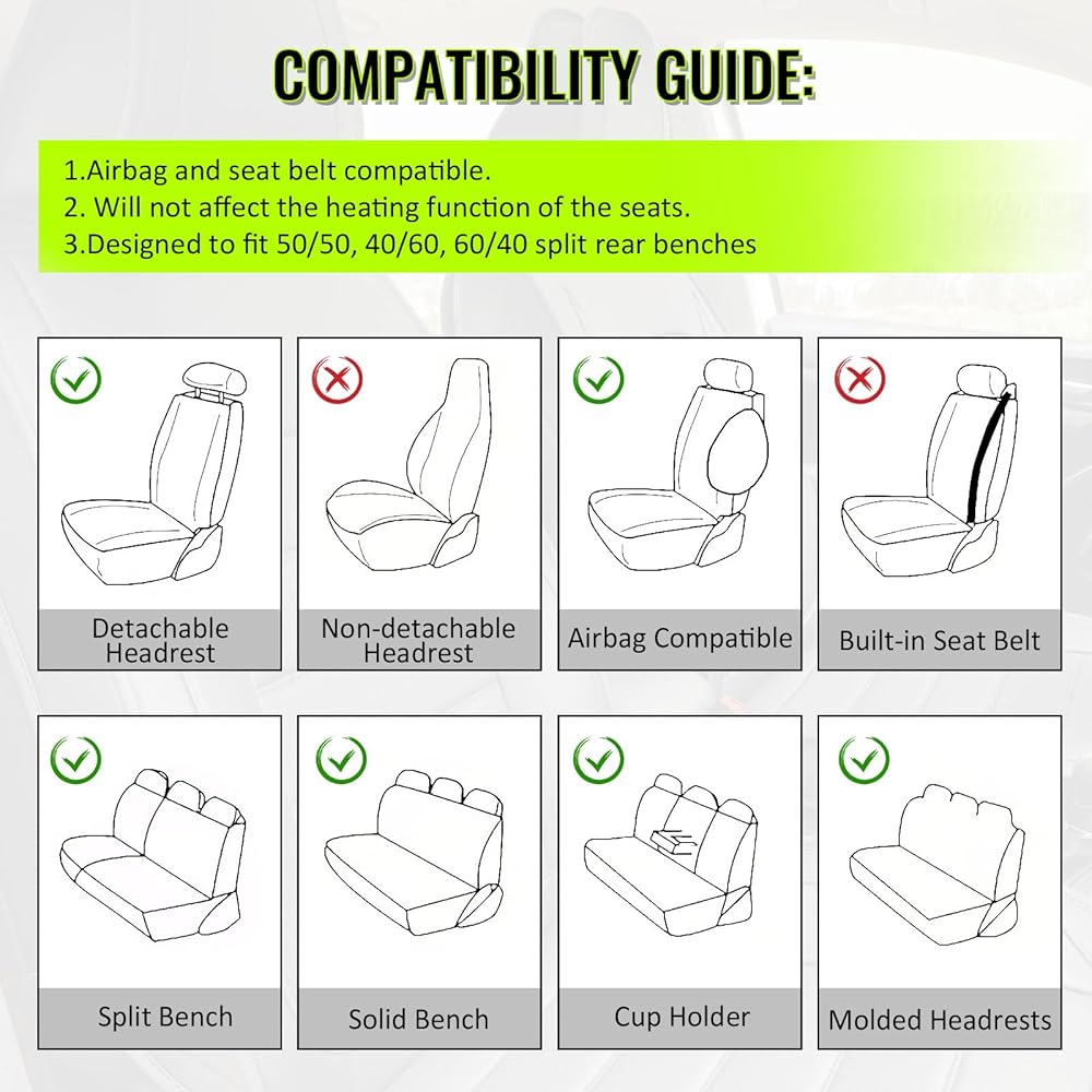 Package Includes: 1x Full Set of Seat Covers (Front + Rear, 5 Seats)