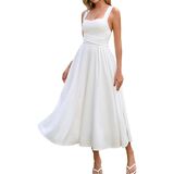 Chic Square Neck: The structured square neckline flatters your collarbone, while the sleeveless cut keeps you cool, perfect for warm-weather events like garden weddings or brunch dates