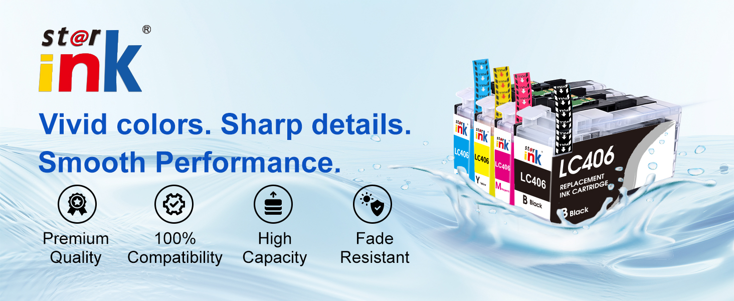 [𝗩𝗶𝗯𝗿𝗮𝗻𝘁 𝗣𝗿𝗶𝗻𝘁𝘀, 𝗙𝗮𝗱𝗲-𝗥𝗲𝘀𝗶𝘀𝘁𝗮𝗻𝘁 𝗤𝘂𝗮𝗹𝗶𝘁𝘆] Starink LC406XL ink cartridge utilizes premium-grade pigment and dye formulations. Experience crisp, smudge-free black text and vivid, professional-grade color photos. The high-purity ink prevents clogging, ensuring smooth output from the first page to the last, even during high-speed printing.
