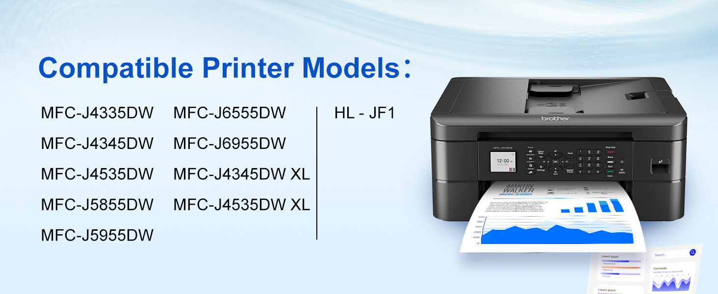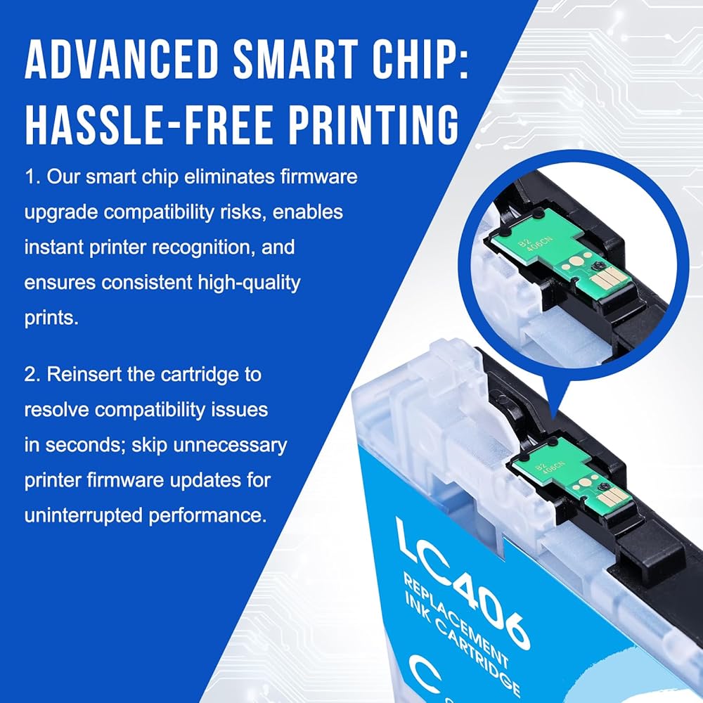 [𝗨𝗽𝗴𝗿𝗮𝗱𝗲𝗱 𝗖𝗵𝗶𝗽 - 𝗪𝗶𝗱𝗲 𝗖𝗼𝗺𝗽𝗮𝘁𝗶𝗯𝗶𝗹𝗶𝘁𝘆] Equipped with the latest smart identification chips to ensure instant recognition with all firmware versions. Say goodbye to "Ink Not Detected" errors. Perfectly compatible with Brother MFC-J4335DW, MFC-J5855DW, MFC-J6555DW, MFC-J4535DW, MFC-J6955DW, MFC-J4345DW, and MFC-J5955DW printers.
