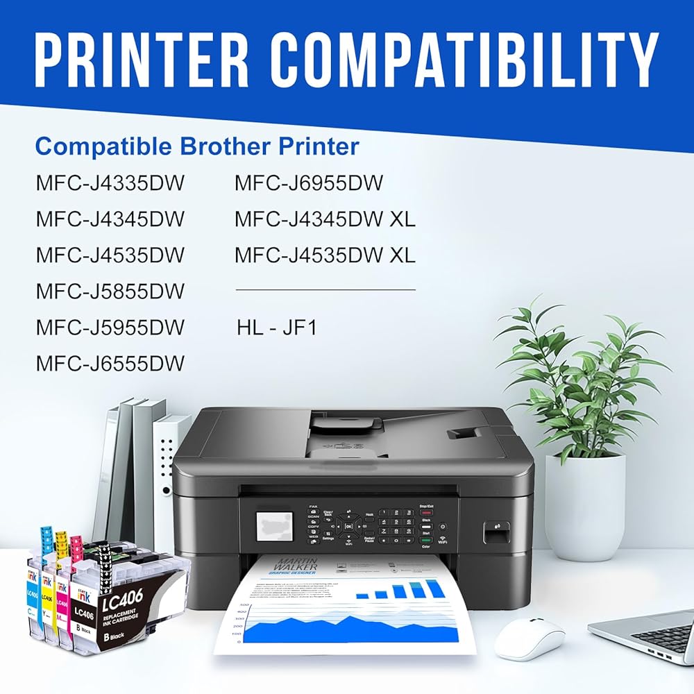 [𝗖𝗼𝗺𝗽𝗹𝗲𝘁𝗲 𝗣𝗮𝗰𝗸𝗮𝗴𝗲 & 𝗣𝗿𝗼𝗳𝗲𝘀𝘀𝗶𝗼𝗻𝗮𝗹 𝗦𝘂𝗽𝗽𝗼𝗿𝘁] Each box contains 1 x Black, 1 x Cyan, 1 x Magenta, and 1 x Yellow LC406 Ink Cartridges (Total 4 Pack). We have included a detailed, step-by-step User Manual to ensure a smooth, error-free installation process.