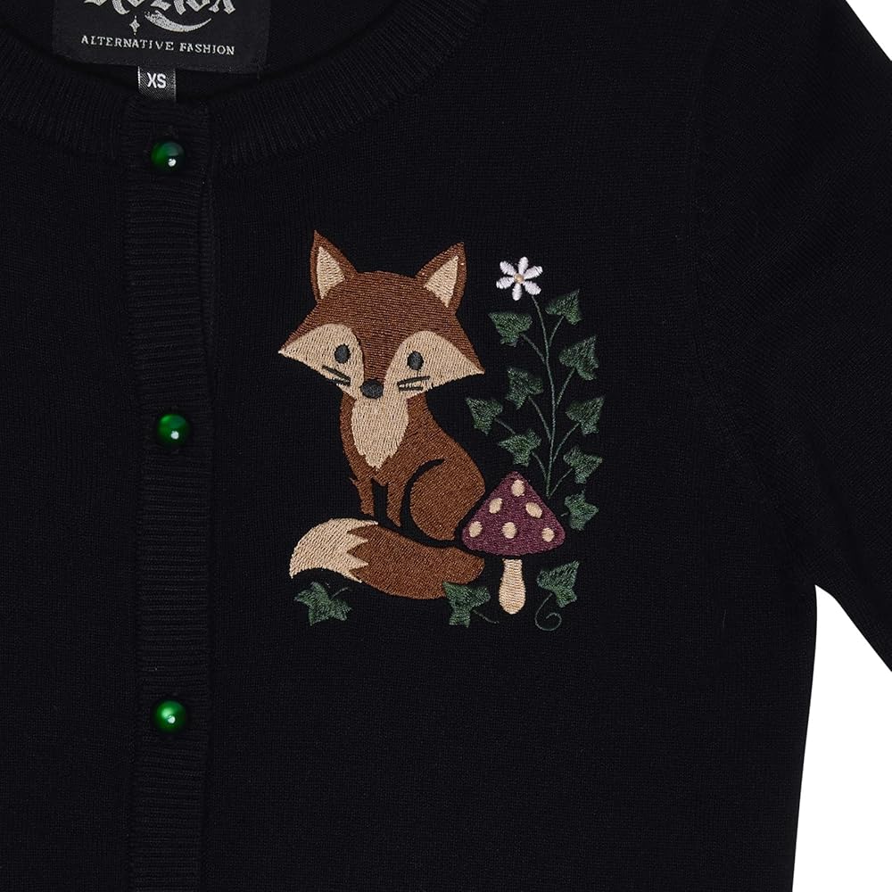 VINTAGE WOODLAND INSPIRED DESIGN - Classic cardigan featuring cute fox & ivy embroidery on the chest and ivy detailing near the sleeve cuffs. Inspired by countryside charm and retro styling, perfect for woodland lovers and vintage fashion enthusiasts.