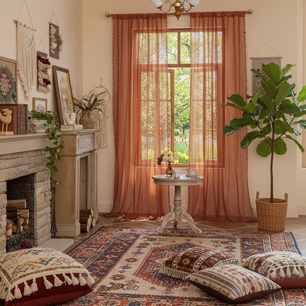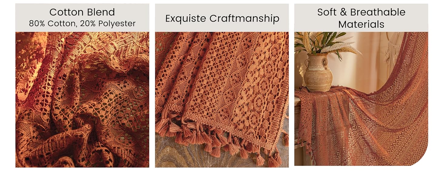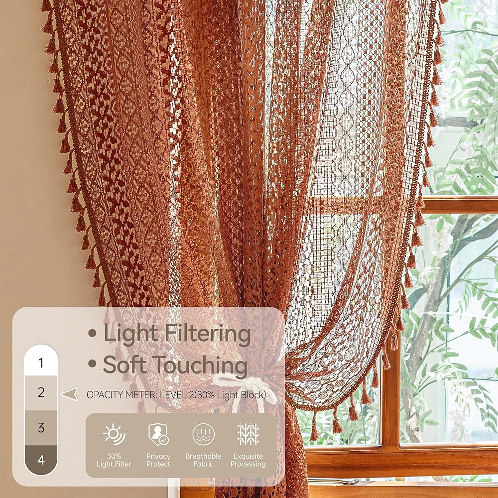 Balance the Privacy and Light Filtering: Crochet cotton blend fabric filters 20% light while maintaining soft glow illumination,Achieve energy-saving brightness & daytime privacy simultaneously.Unique lace density: See outward clearly without exposing indoor activities