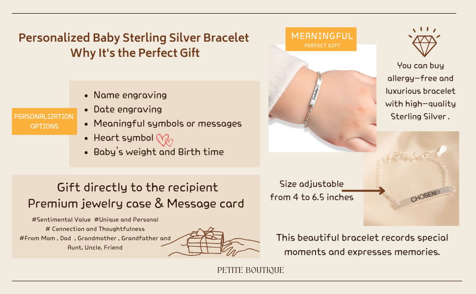 Sterling Silver: Crafted from high-quality 925 sterling silver, this bracelet is both durable and hypoallergenic, making it safe for delicate baby skin.