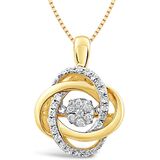 Beautiful love knot necklace in rhodium plated sterling silver or 14K yellow gold plated sterling silver features a dancing diamond cluster in the center. The cluster of diamonds in motion moves continuously creating lots of sparkle. The knot is woven with a ribbon of diamonds. Diamonds are 1/5 Carat Total Diamonds Weight, I-J Color, I2-I3 Clarity. The 18 Inch Box Style Chain has a Lobster Clasp. We recommend cleaning with mild soap water, rinse and buff gently with a soft cloth or the Polishing Cloth that is included. Do not use silver cleaners or other harsh cleansers as they can damage the finish