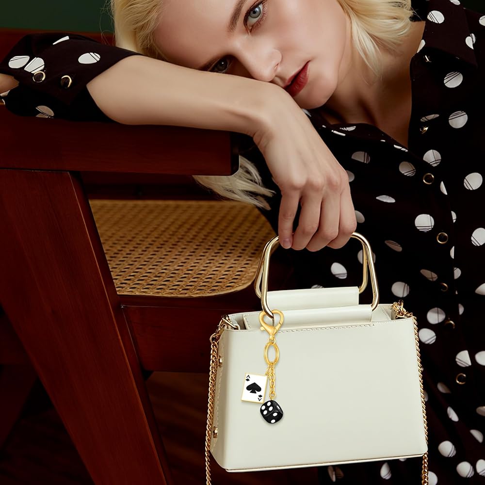 - Fun Poker Design:Features a heart - shaped clasp, an Ace of Spades card charm, and a dice charm, bringing a playful casino vibe to your keys or bag.
