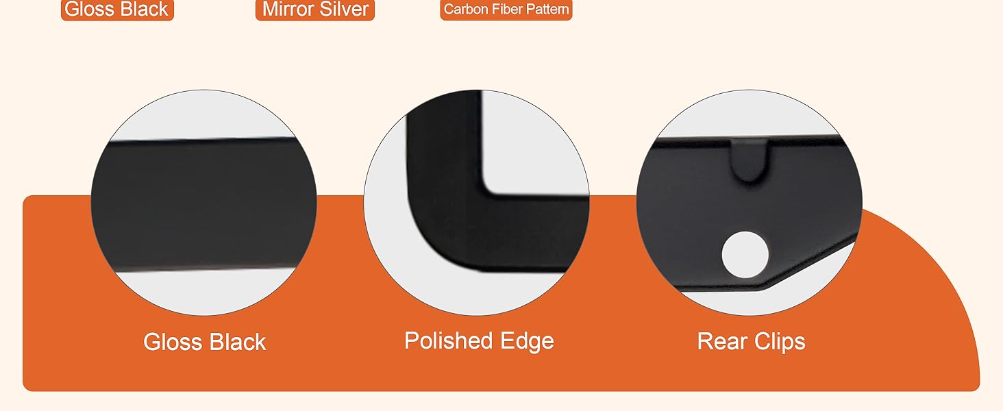 Gloss Black License Plate Frame: This license plate frame is crafted from premium aluminum alloy, ensuring high quality and keeping your license plate in pristine condition for years to come. Gloss black license plate frames look more textured than regular matte black ones, making license plates look more stylish. (Please note that in some states, license plate frames may obscure the text and registration sticker above the license plate.)