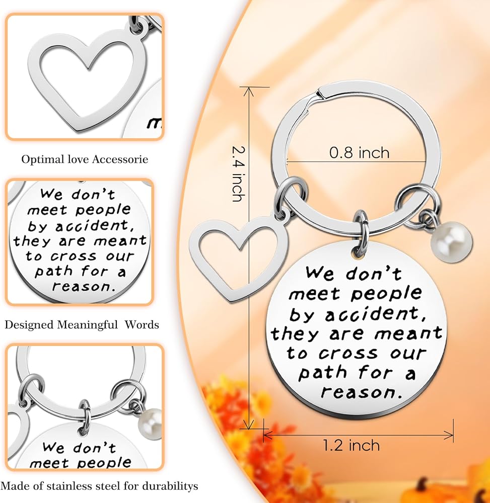 This Meaningful Farewell Gifts Keychain Features The Heartfelt Message We Dont Meet People By Accident They Are Meant To Cross Our Path For a Reason Creating Sentimental Goodbye Gifts That Honor Relationships And Connections The Thoughtful Design Makes It Perfect Farewell Gifts For Coworkers Colleagues Or Friends Who Are Moving On To New Chapters In Their Lives