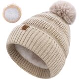 Classic Stunning Design: The cable knit thermal fleece beanie for cold weather is very classic design with flip up edge and pom pom on the top. It will be great to suit all your clothes like your stylish cardigan, scarf, leggings or other formal or casual outfits.