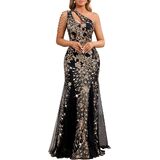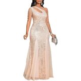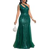 【Design】: One-Shoulder Fringe Bodice Cutout Sequin formal Dress for women makes you more sexy and attractive, Exquisite Beaded Shoulder Fringe,V-Neck with Illusion Mesh, hips-wrapped, maxi Length, Strike the perfect balance between sexy and sophisticated. Mermaid Tail with sheer mesh/tulle overlay at the bottom, ensuring a memorable entrance.