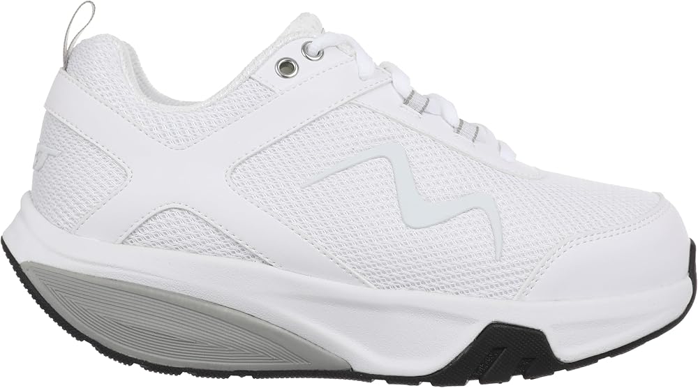 Precision-engineered for active fitness walking, the Sport 4 is meticulously crafted with double-top eyelets and a loop puller, offering unparalleled stability on sidewalks, grass, and treadmills. The combination of breathable mesh and synthetic leather in the upper strikes a perfect balance between durability and a refreshing feel, making it the ideal companion for brisk walks. Key Features:; MBT LEVEL 2 ROCKER: Featuring a medium-strong sole curve, it provides ample cushioning and muscle activation for comfortable everyday wear.; BREATHABLE UPPER: Crafted from a blend of breathable mesh and synthetic leather, ensuring durability and a breezy feel during fast-paced walks.; EVA FOAM MIDSOLE: The pivot axis beneath the midfoot promotes an active rolling movement with each step, while the EVA foam material ensures excellent shock absorption.; M.I.D.S. OUTSOLE: Pressure during movement directs the M.I.D.S. outsole outward for superior shock dissipation, offering balanced traction and stability during walking and running.; PU INSOLE: Boasting good shock absorption and breathability for enhanced comfort.; ROCKER BOTTOM SHOE: The curved sole matches the natural movement of your foot, providing stability similar to a traditional walking shoe. The gentle roll promotes natural cushioning, while the PivotAxis angle at the midfoot enhances support during propulsion.; MBT SensorTechnology: Positioned between the midsole and outsole, this technology, with its soft PU compound, creates the unique functionality of the MBT sole. The PivotAxis Technology under the midfoot promotes balance and a natural rolling movement, activating muscles for good posture.; STABILITY: Similar to high-quality walking shoes, the MBT shoe ensures stability without side-to-side rolling, instilling confidence whether you're walking or running.; APMA CERTIFIED: Endorsed by the American Podiatric Medical Association (APMA), MBT shoes support overall foot health, providing good arch suppo