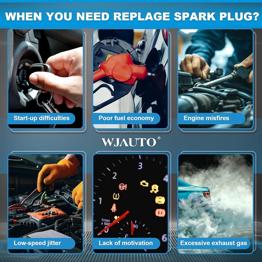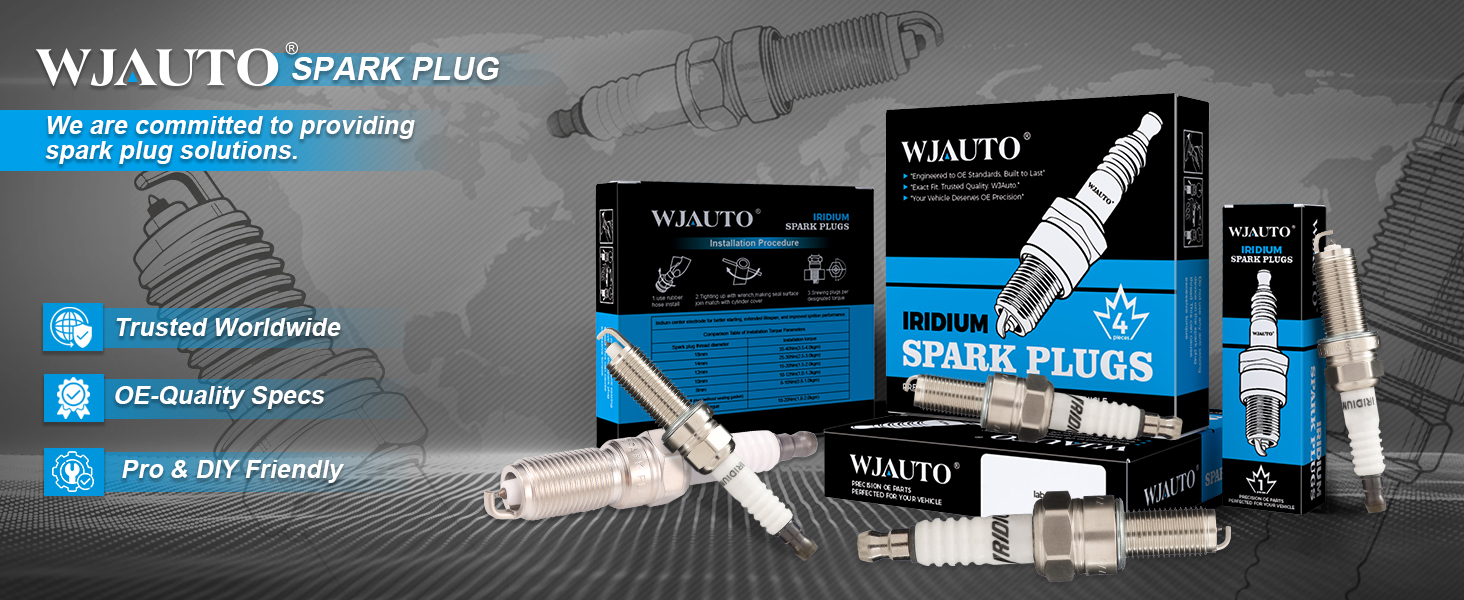 【Wide Compatibility – OEM Fit】WJAUTO Iridium spark plugs are OEM replacement parts designed for excellent engine performance and long-lasting ignition reliability.