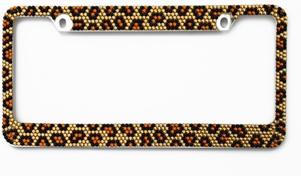 High Quality Rhinestone Metal License Plate Frame with Two Caps. All crystals are hand laid into a steel license plate frame. It is much more "Sparkling" than the listing images and other crystal license plate frames.
