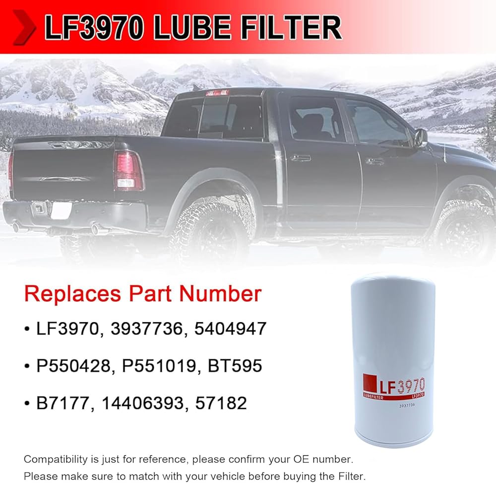 REPLACES PART NUMBER: LF3970, 3937736, 5404947, P550428, P551019, BT595, B7177, 14406393, 57182. Compatibility is just for reference, please confirm your OE number