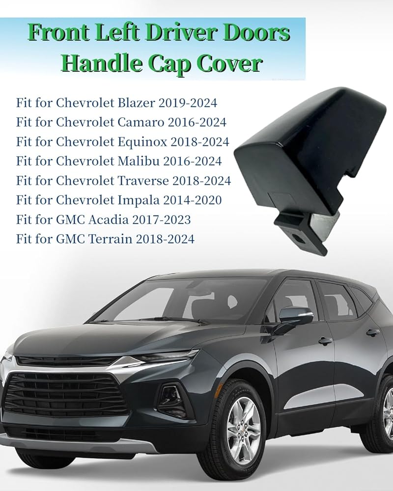 Compatibility: Left driver doors handle cap cover fits for Chevy Blazer 2019-2024, Equinox 2018-2024, Impala 2014-2020, Malibu 2016-2024, Camaro 2016-2024, Traverse 2018-2024; fits for GMC Acadia 2017-2023, Terrain 2018-2024