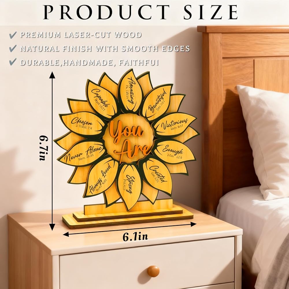 🌻Sunflower Gifts for Women/Compact and Versatile for Any Space:Durable and Elegant Two-Layer Wooden Construction.With its compact size (6.5 x 6.5 inches), this decor piece is perfect for desks, bookshelves, prayer corners, or entryways. It's a beautiful addition to your Christian desk decor, spiritual decor, or as an inspirational piece for any room in the home.