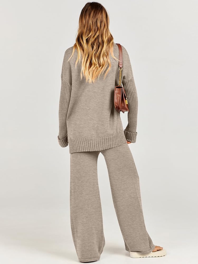 【Material】Our womens sweat suits 2 piece set, made with soft, breathable knit fabric, ultra casual and cute to wear, this two piece matching set is a cozy instant outfit, featuring a slouchy, relaxed fit with wide leg pants, this sweater set gives you the warm, comfy and comfortable feeling
