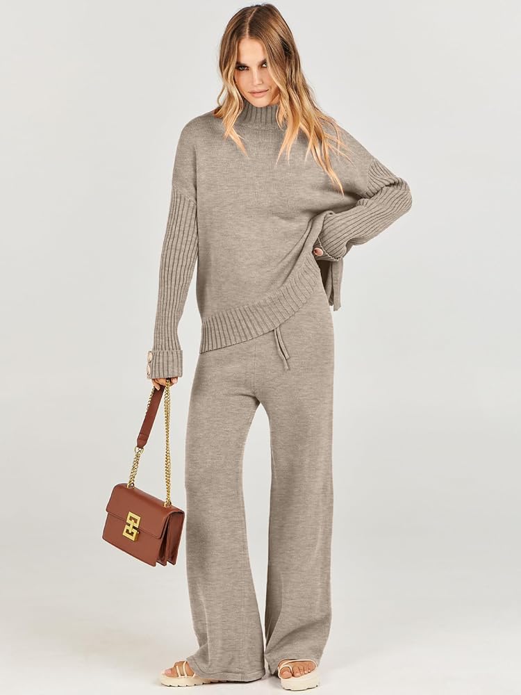【Features】Cozy lounge sets are designed with a turtleneck, long sleeve, drawstring wide leg pants, palazzo sweater pants, ribbed cuffs, loose fit, and oversized style, so you can easily create a stylish chic look, the womens loungewear set so versatile you can wear it any way you want