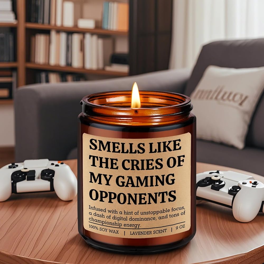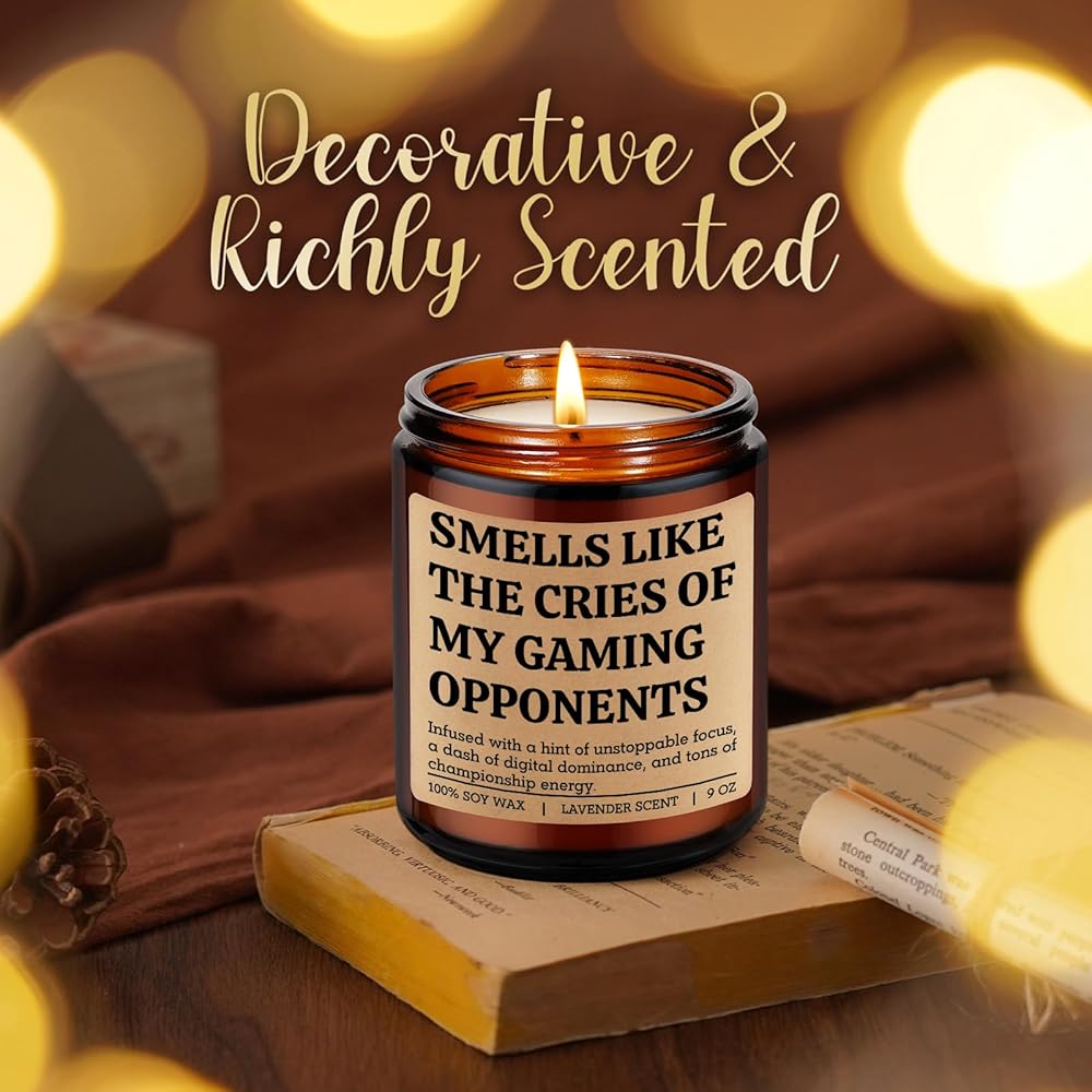 Cool gifts for gamers: Celebrate your favorite gamer's victories with this gamer candle featuring the bold message “Smells like the cries of my gaming opponents”; Designed to bring humor and pride to any gaming enthusiast, it's a lighthearted shoutout to their gaming prowess; Whether for your friend, boyfriend, son, husband, dad, brother, or fellow gamer, this video game candle is a must-have for their gaming setup