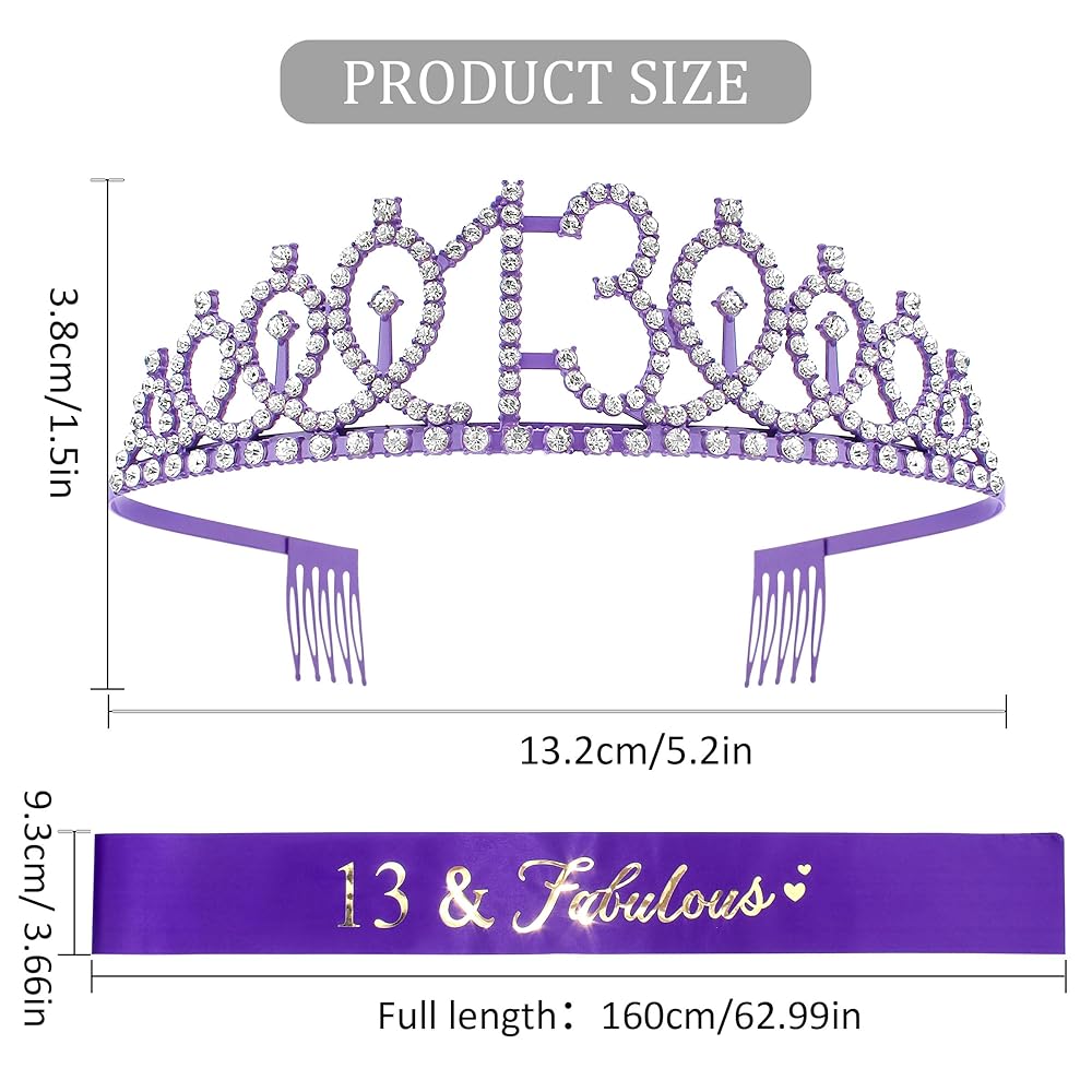 【Perfect 13th Birthday Gift】: Contains a sweet 13 sash and a dazzling crown to get the most attention at your birthday party and make the most of the day.